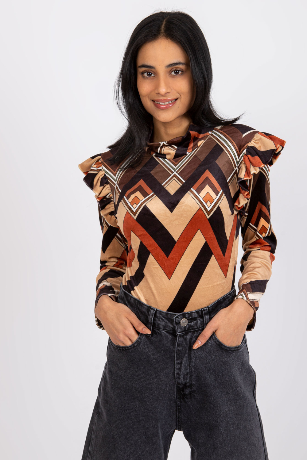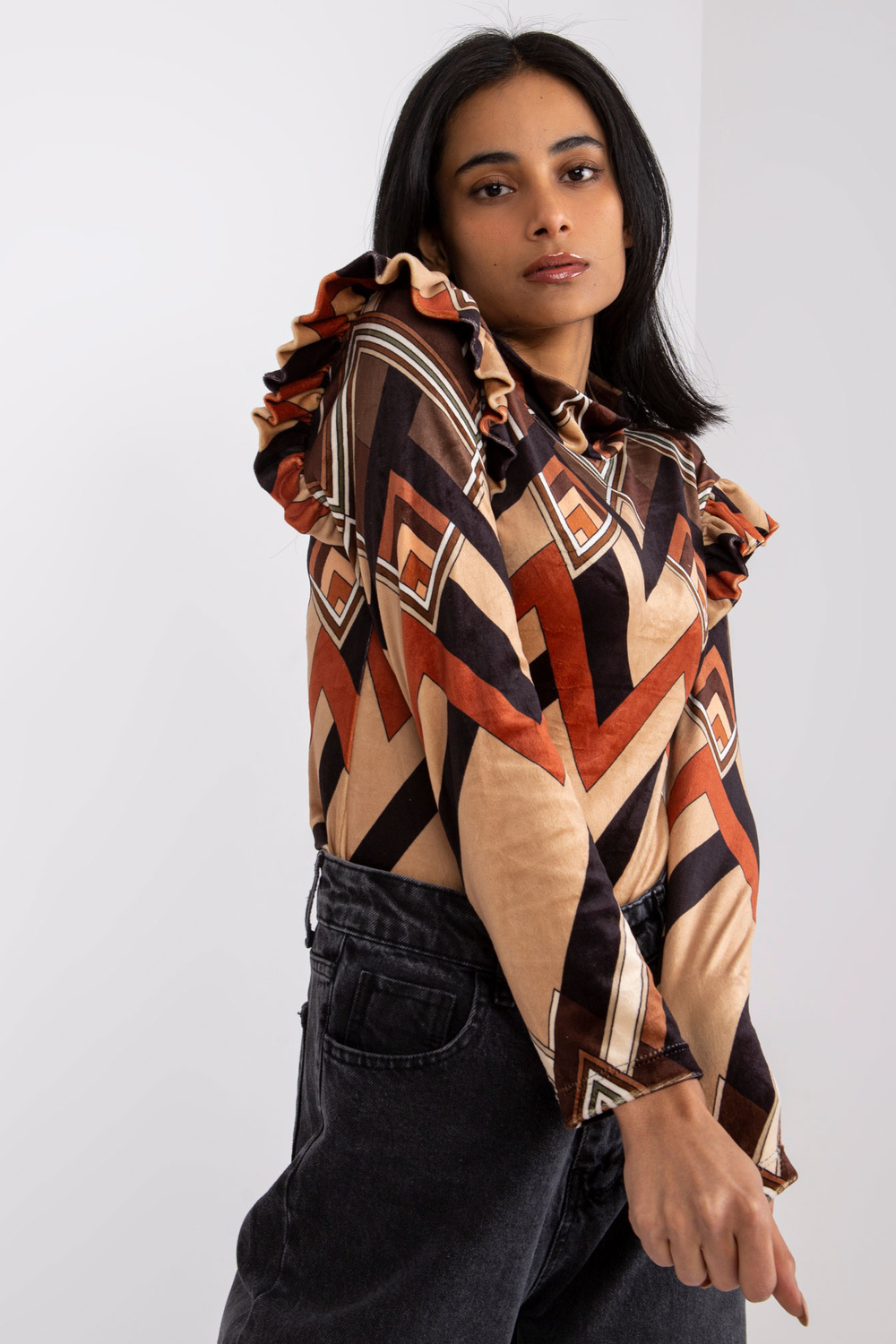 Brūni bēša blūze ar Annabel apdrukām.