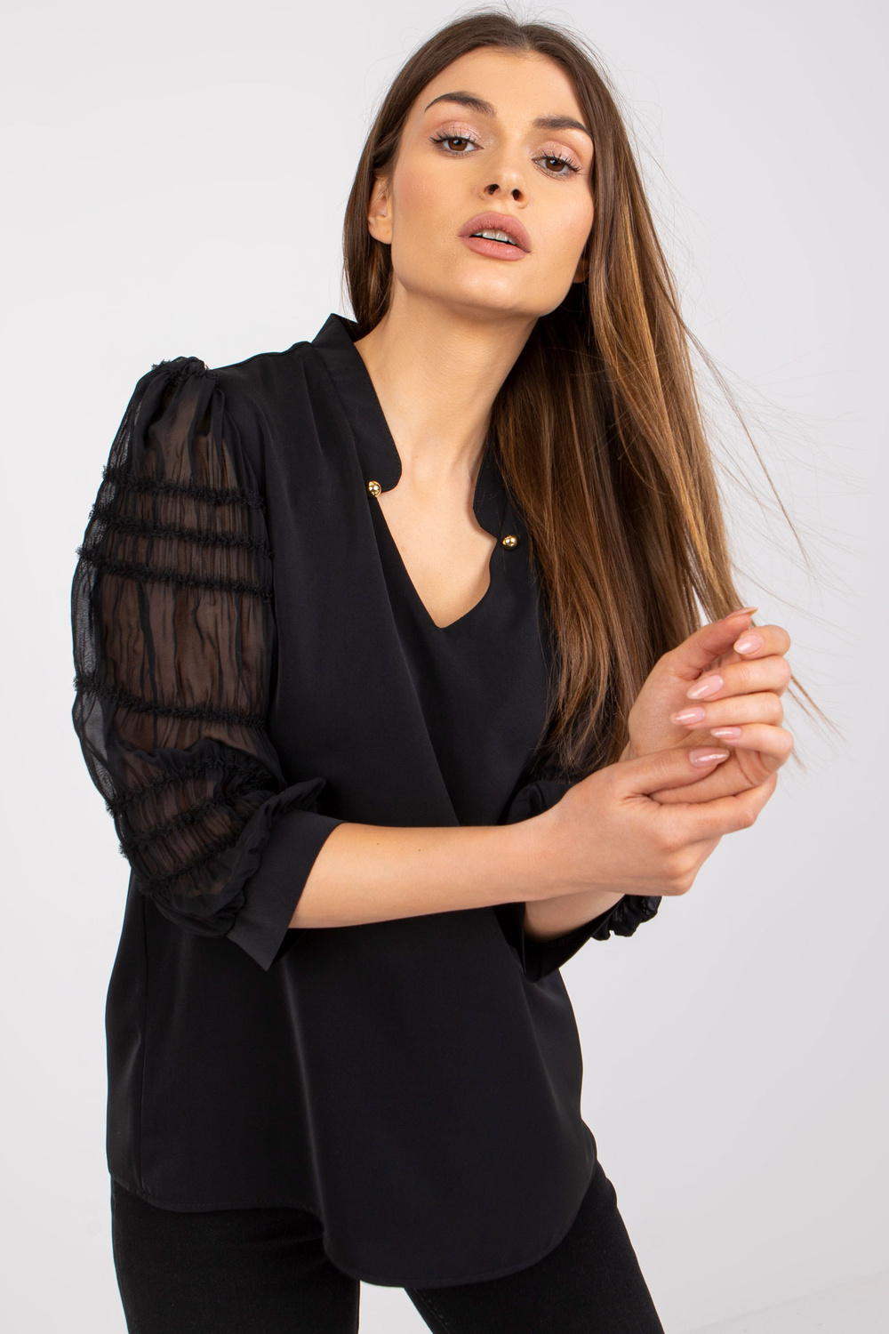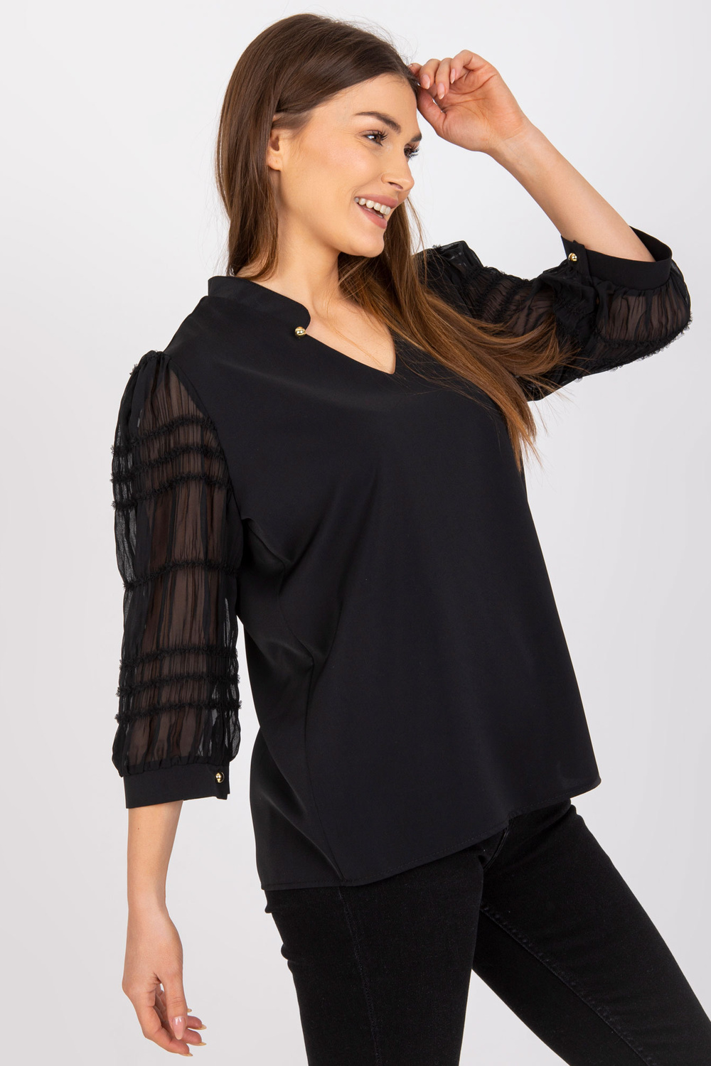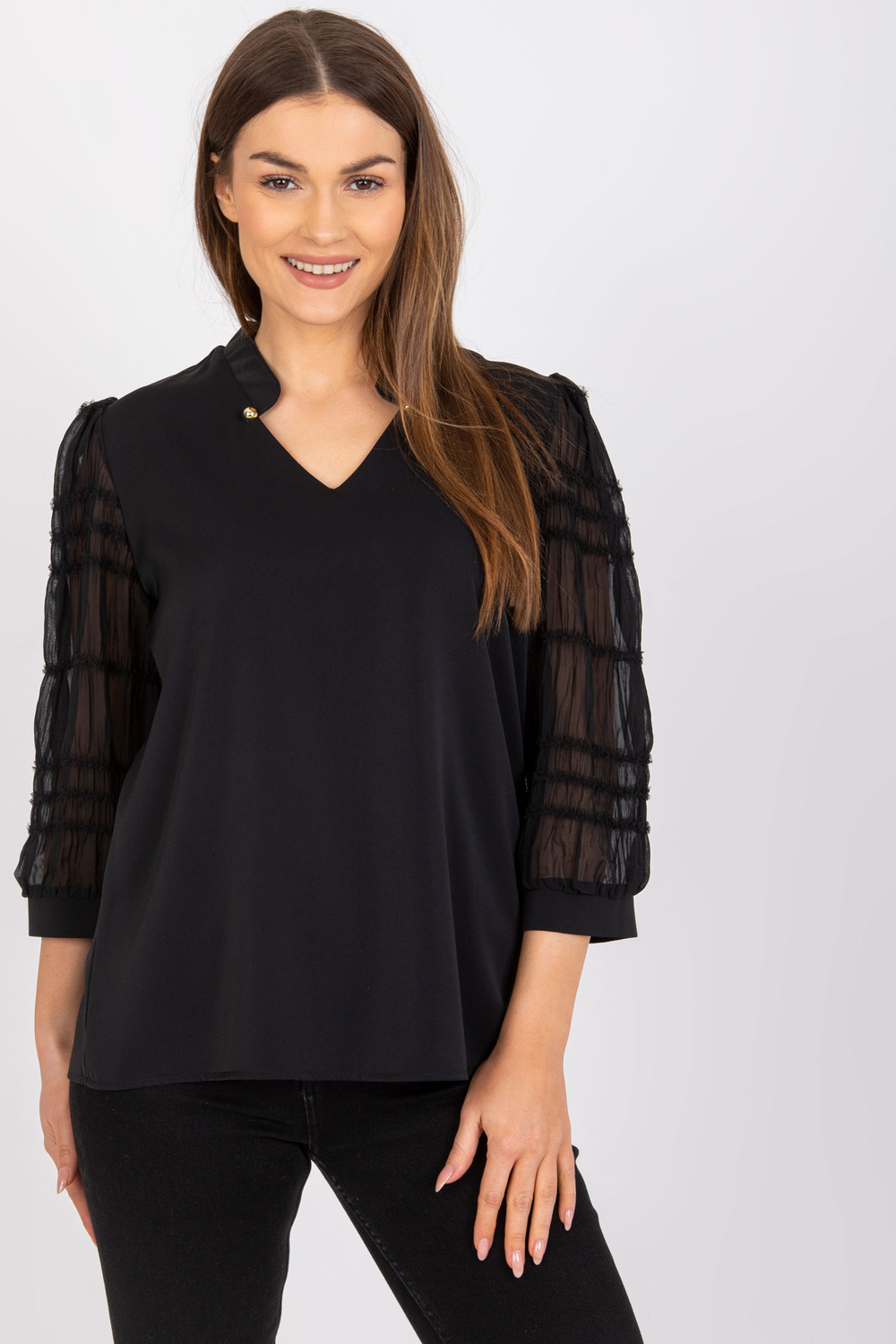 Melna, brīva formāla blūze ar 3/4 piedurknēm< /strong> .