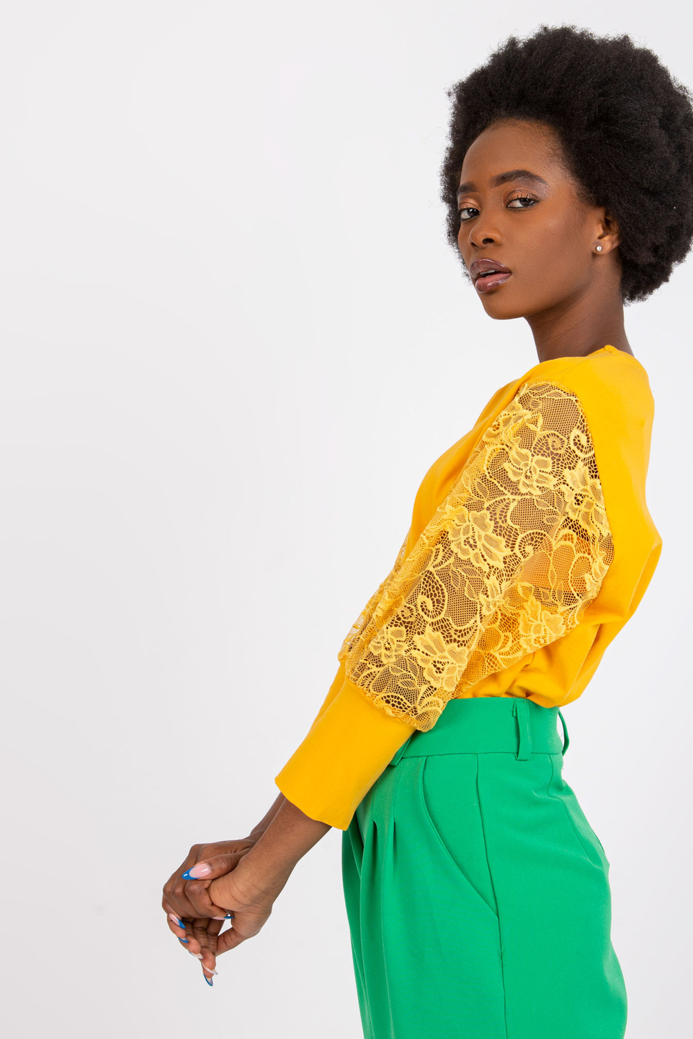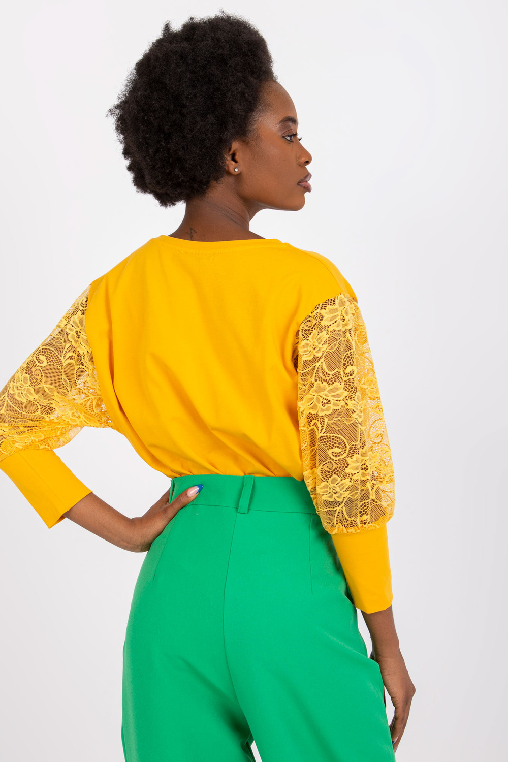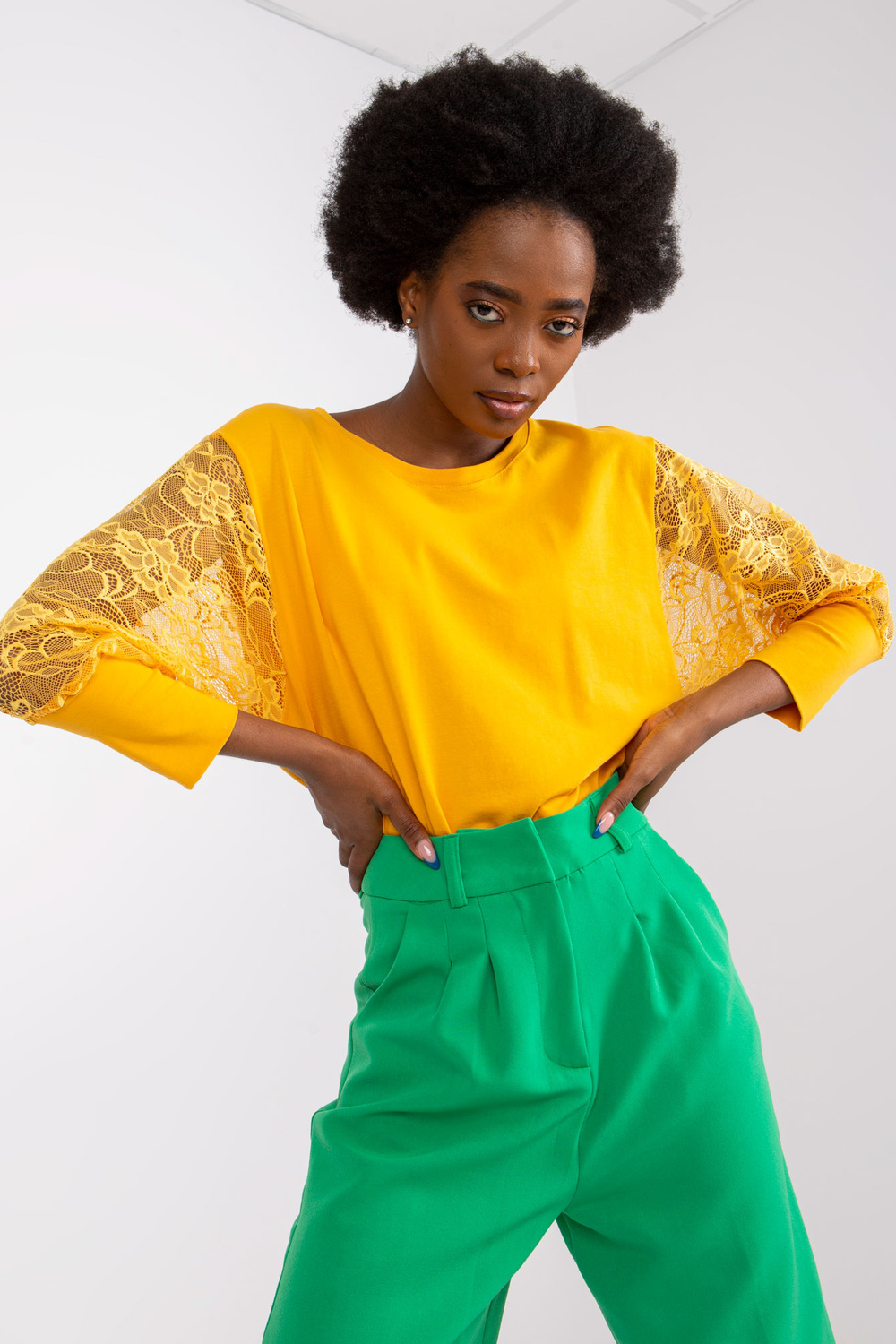 Gaiši oranža blūze ar mežģīņu piedurknēm Havana RUE PARIS.