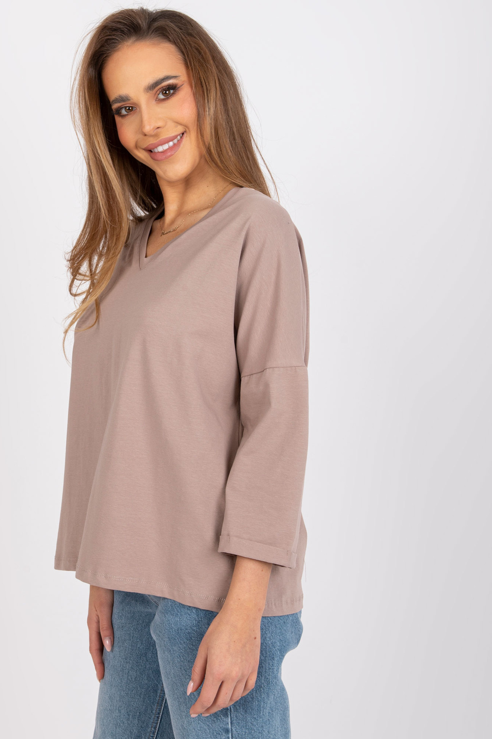 Tumši bēša kokvilnas blūze Sylvie RUE PARIS pret materiālusastāvs: 90% kokvilna, 10% elastāns mazgāšanas metode: mazgāšana veļasmašīnā 30°C Produkta kods: RV-BZ-7558.30 dominējošais raksts: bez raksta Stils: gadījuma iespēja: ikdienišķa, pilsētai, darbam Modelis ir