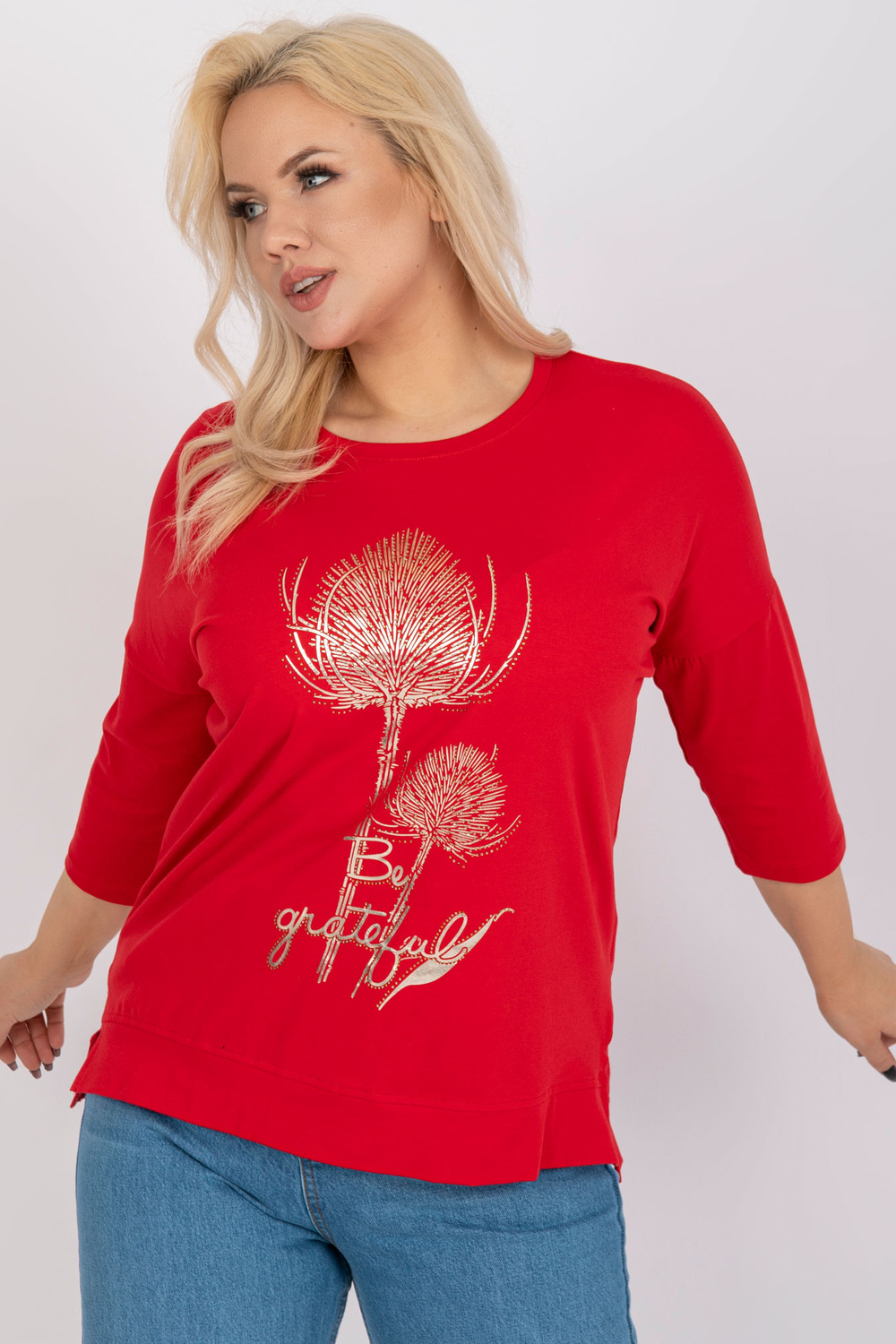 Redplus izmēra kokvilnas blūze ar apdruku.