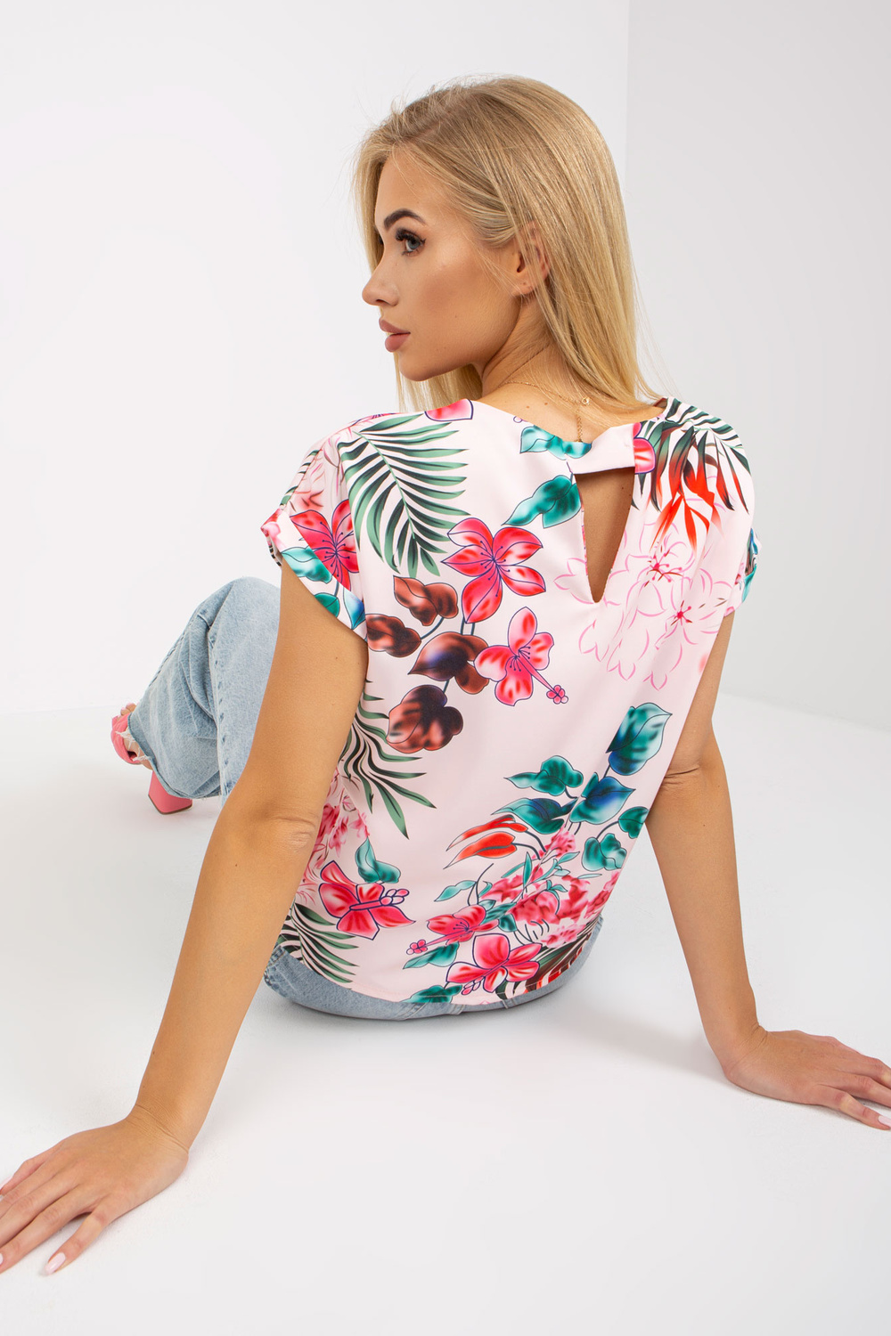 Palepink blūze ar vasaras rakstu RUE PARIS .