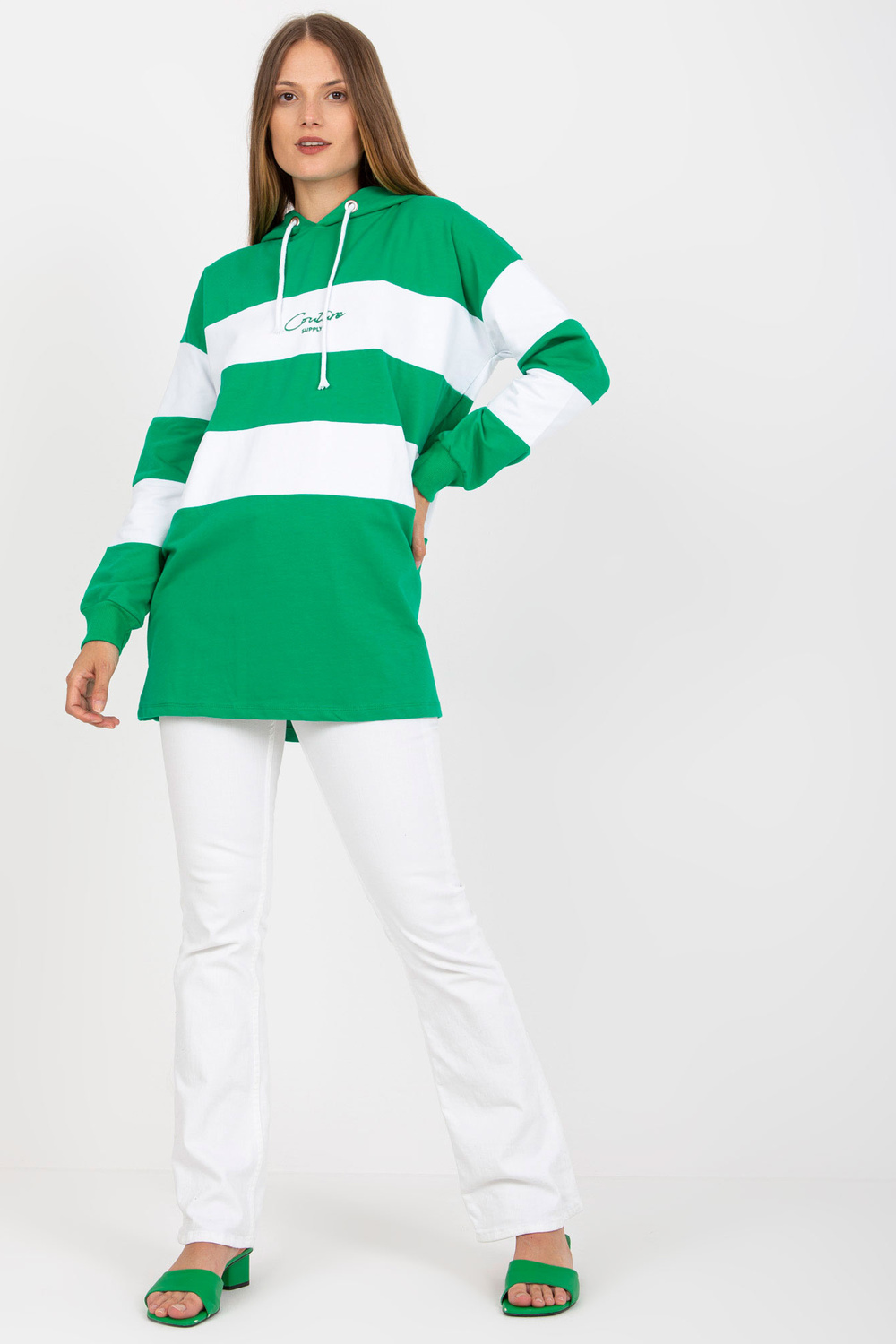 Zaļganbalts sporta krekls ar svītrainu kapuci RUE PARIS .