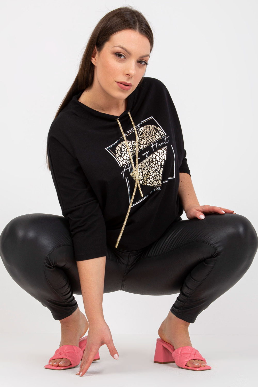Blūzes izmēri viena izmēra izmērā, mērot plakaniski: platums zem padusēm - 76 cm, piedurknes garums - 42 cm, kopējais garums - 71 cm.