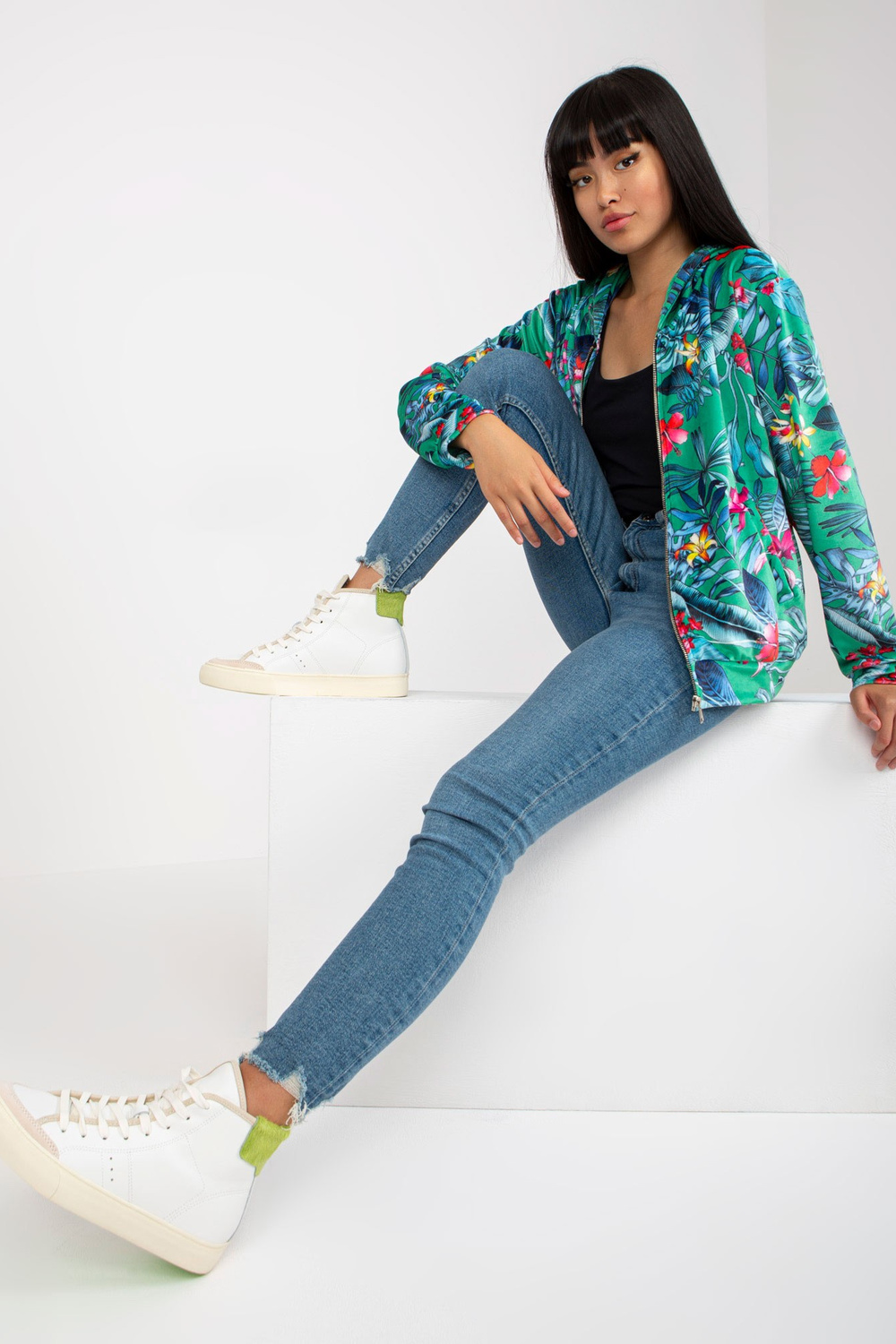 Zaļzils velūra sporta krekls ar apdruku RUE PARIS .