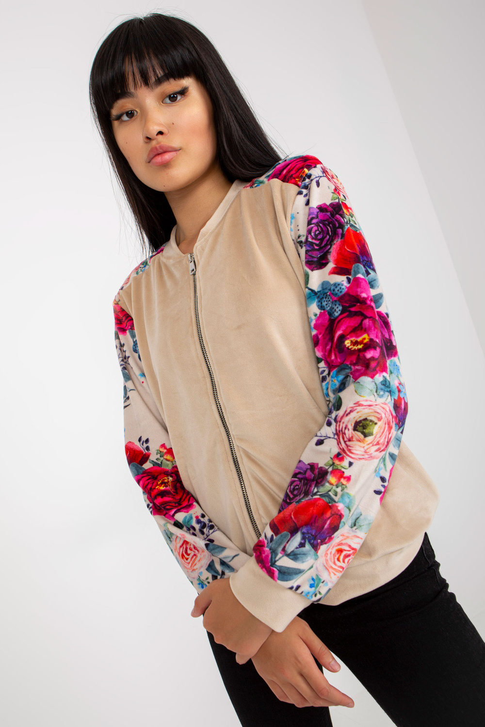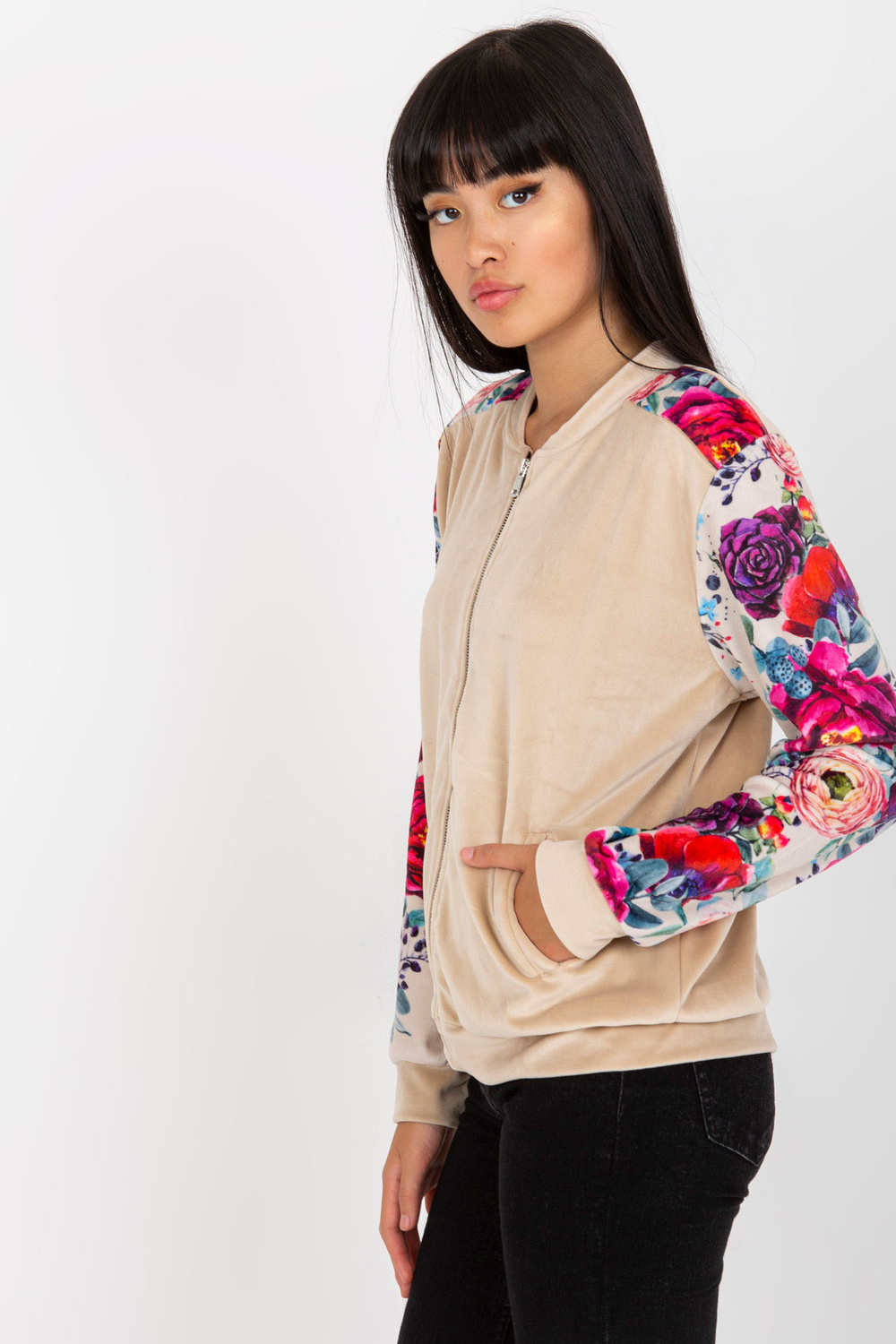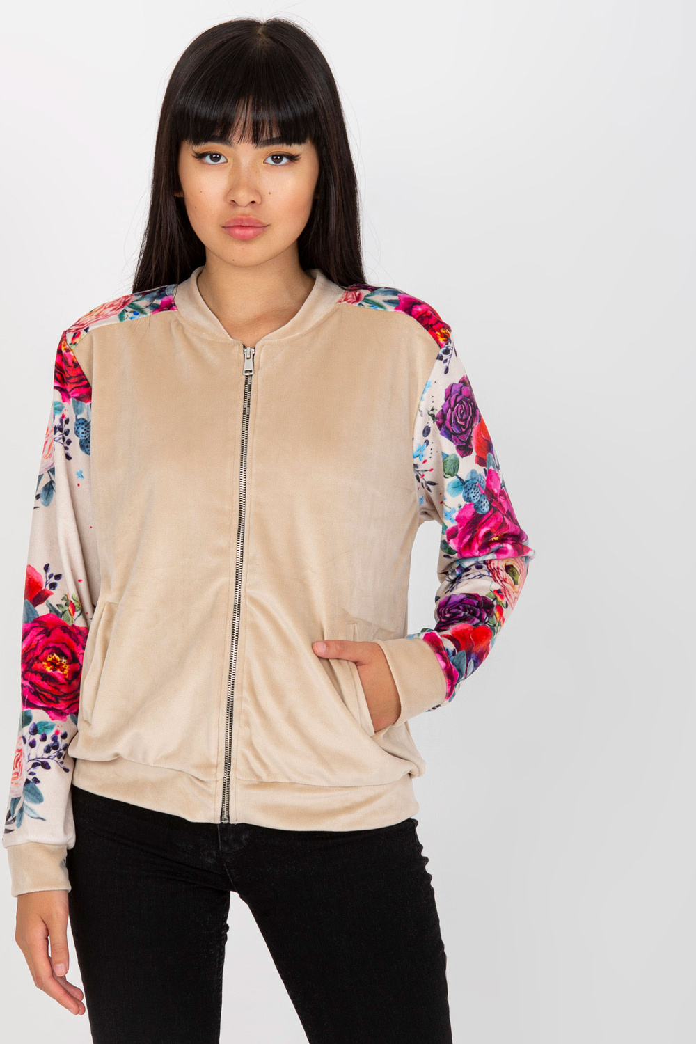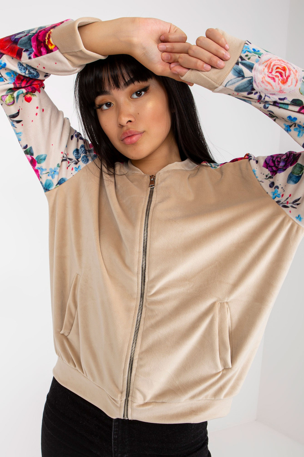 Bēšs bēšs džemperis ar RUE PARIS apdruku.