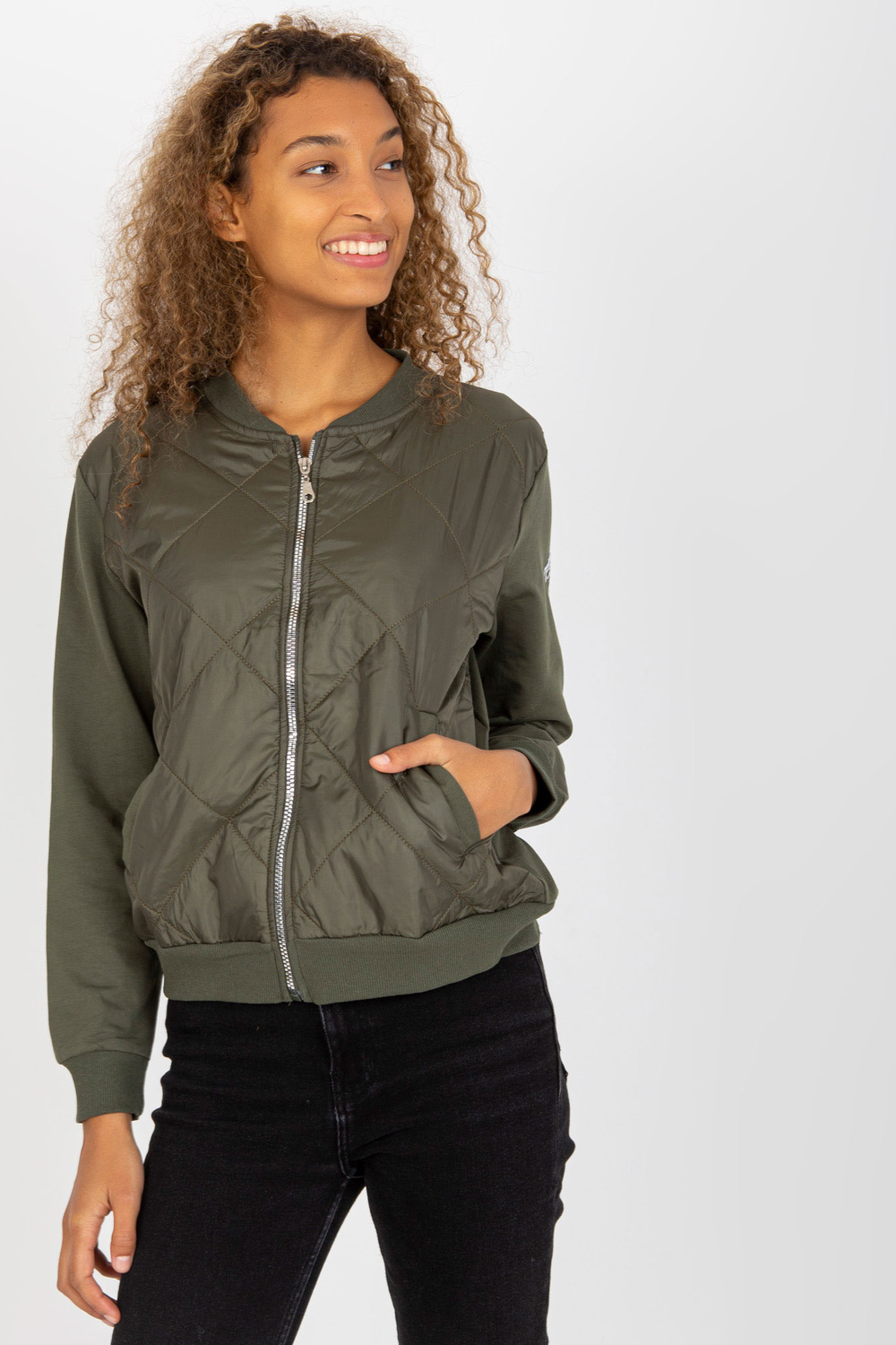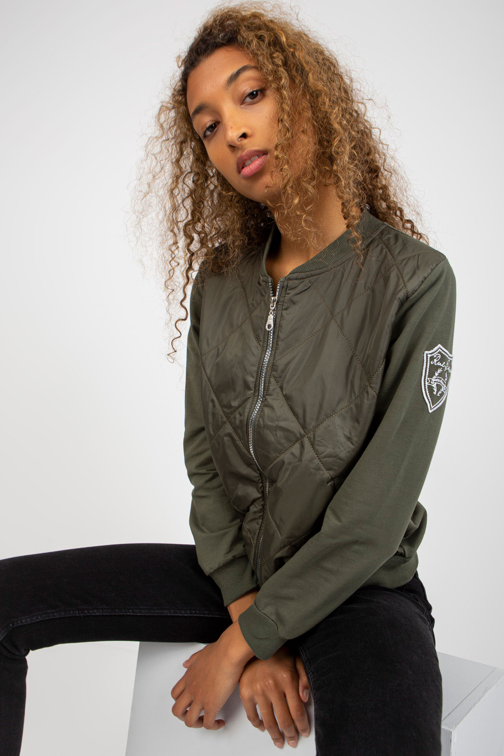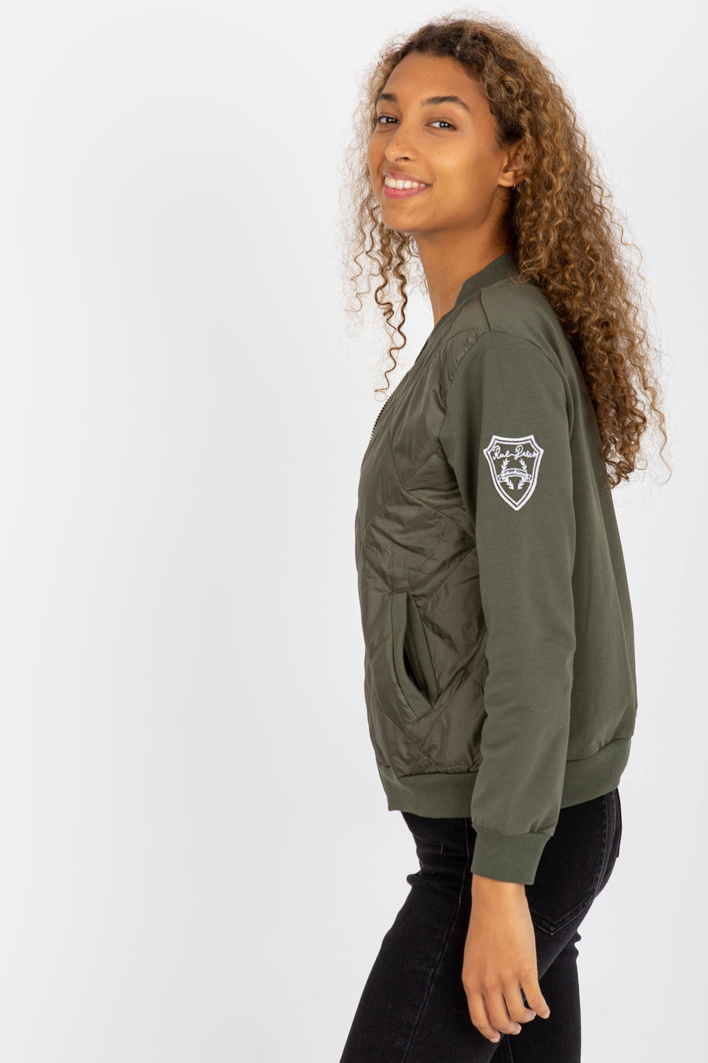 Khaki krāsas sieviešu džemperis ar vatējumu RUE PARIS.