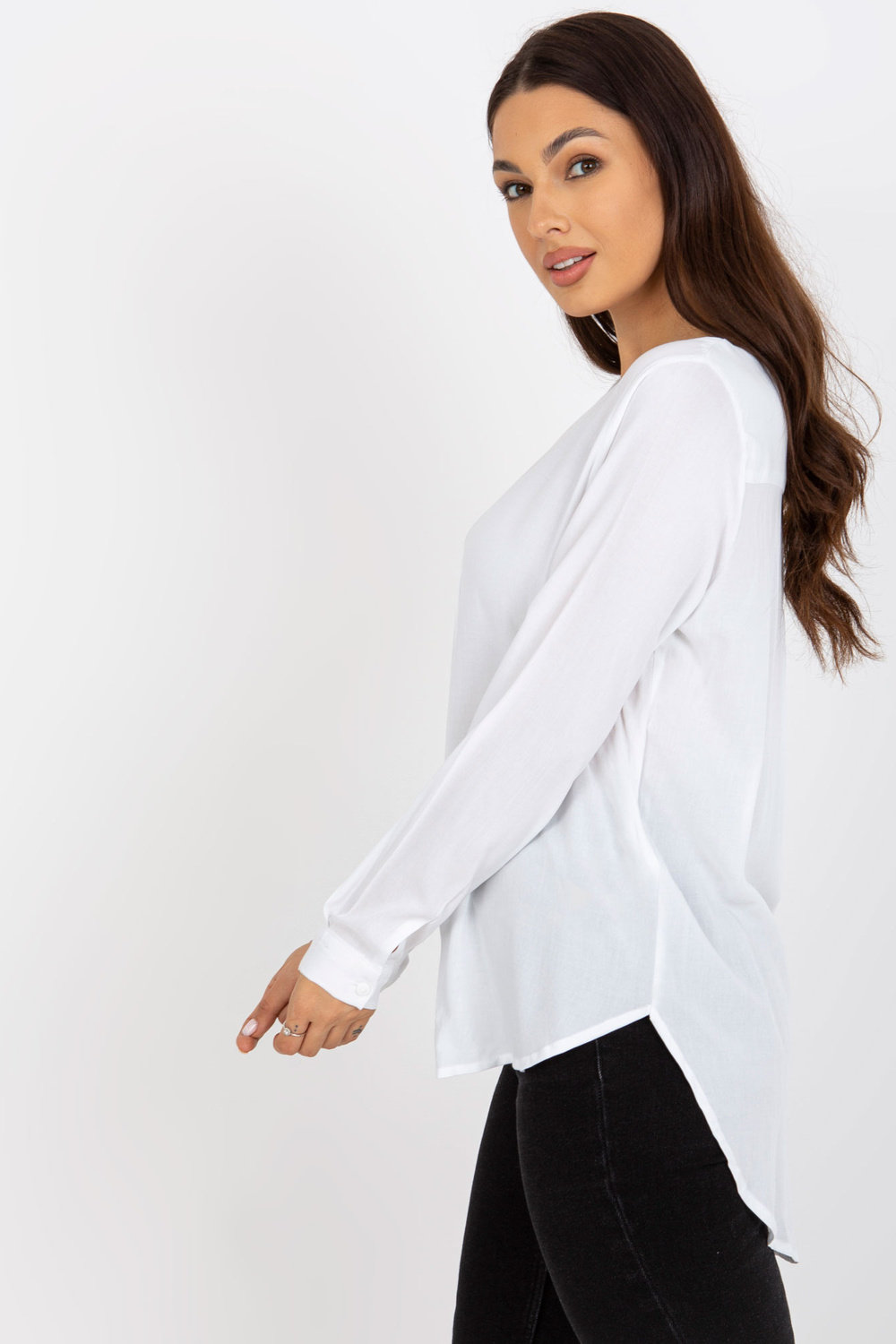Balta asimetriska blūze no viskozes SUBLEVEL. materiāla sastāvs: 100% viskozes mazgāšanas metode: veļas mašīna 30°C