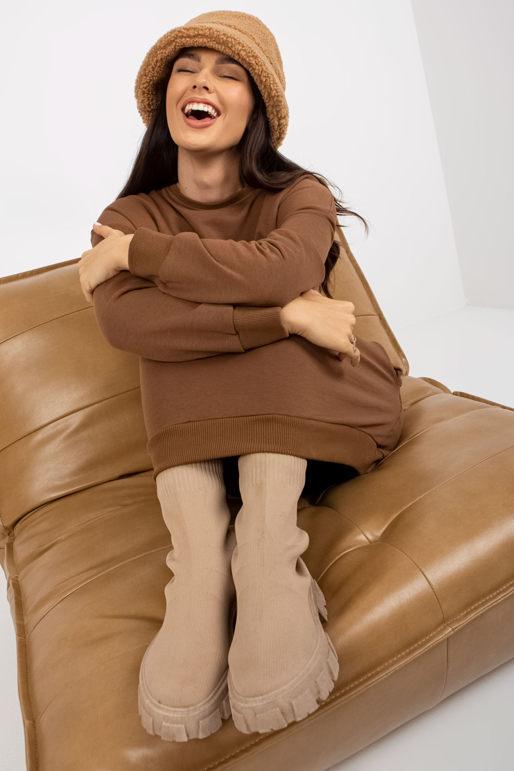 Braunes langes sporta krekls Basic ar Taschen.