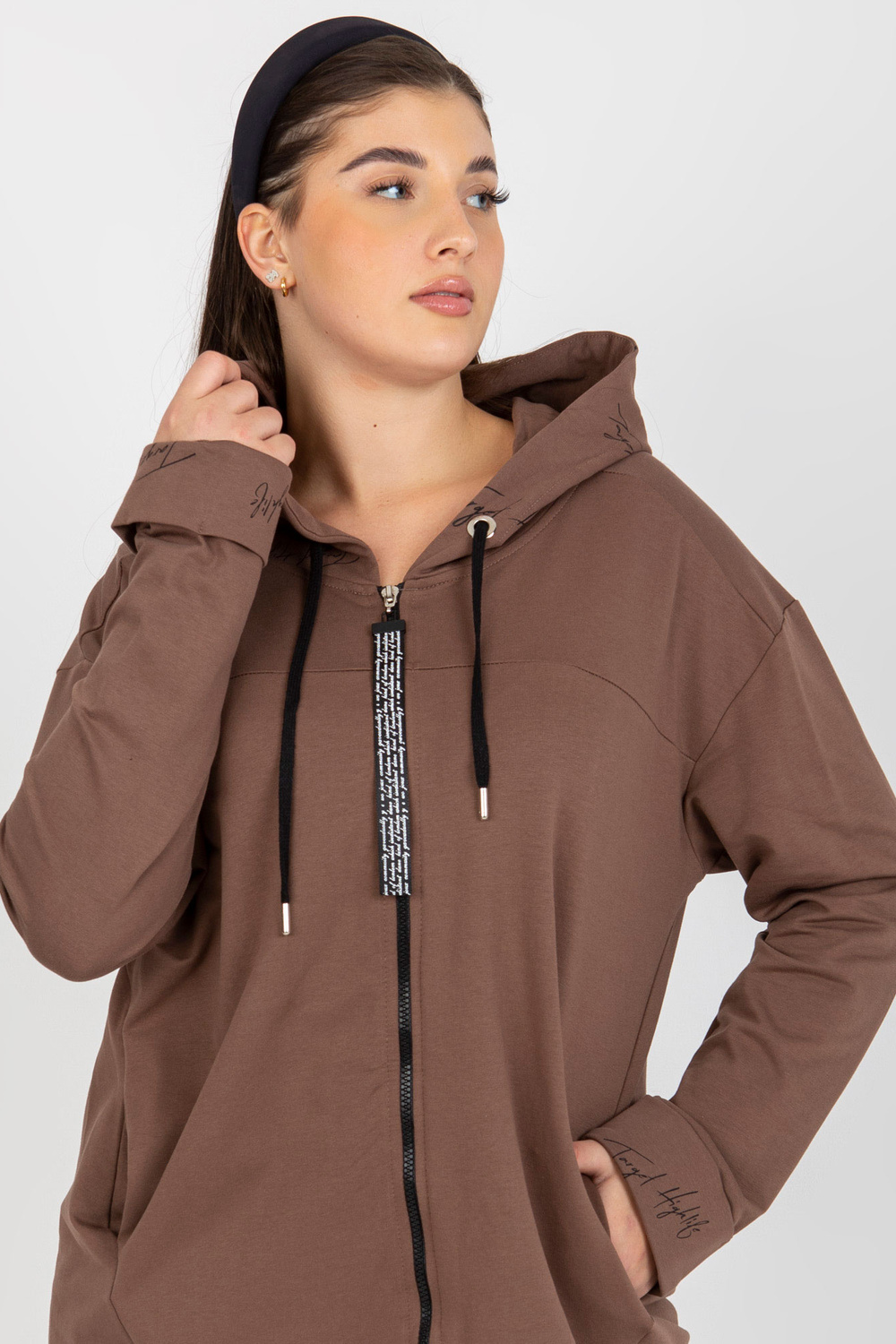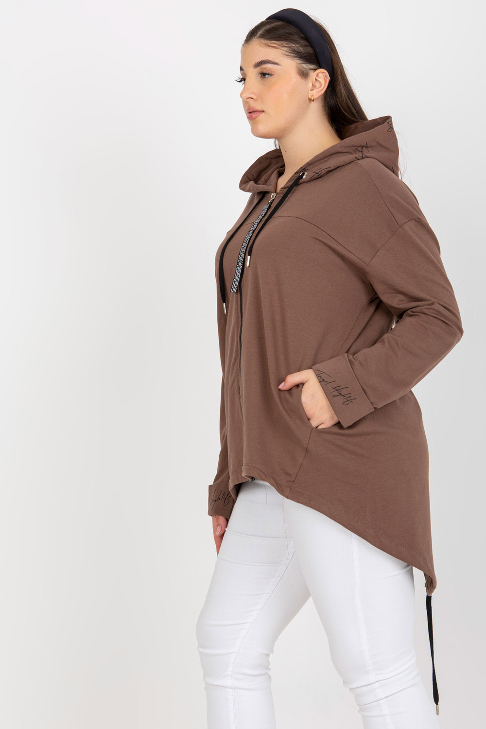 Brūni liela izmēra jakas ar kapuci un rievojumu.