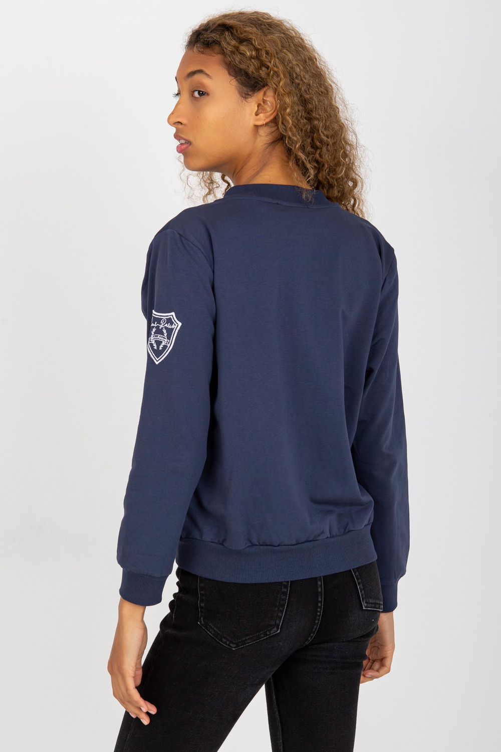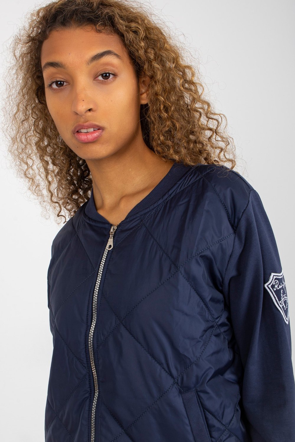 Tumes zils stepēts bomber džemperis ar kabatām RUE PARIS. Produkta kods: RV-BL-8225.88 Dominējošais raksts: gluds Stils: neformāls gadījums: ikdienišķs, ārpus pilsētas, pastaigāties Modele valkā S/M izmēru. Modeļa izmēri: augums 178 cm, krūtis 82 cm, viduklis