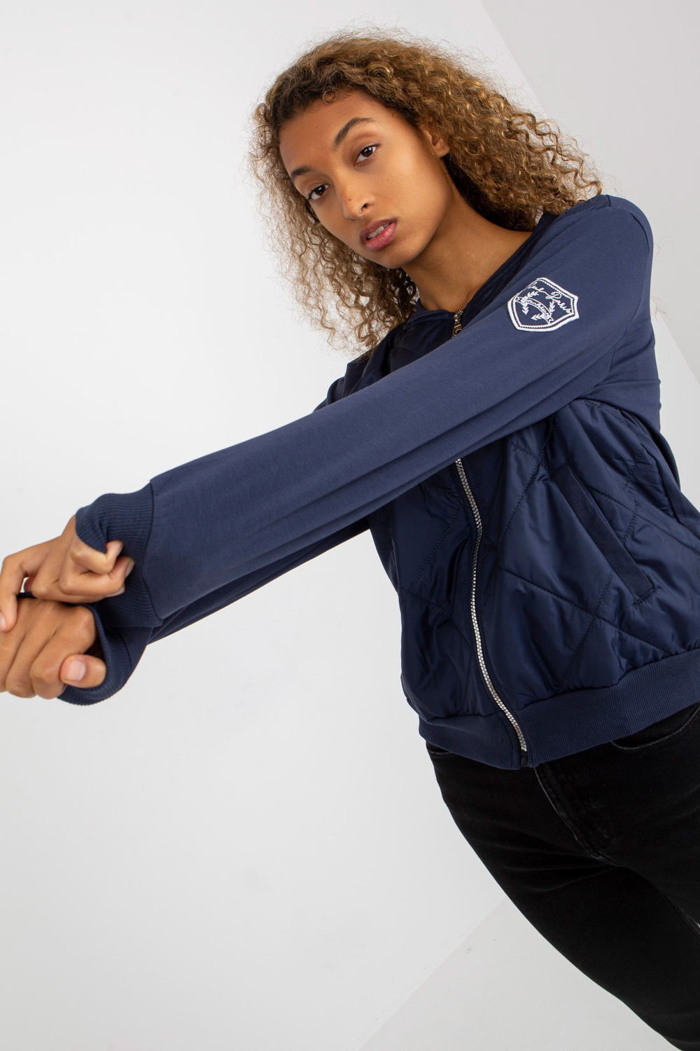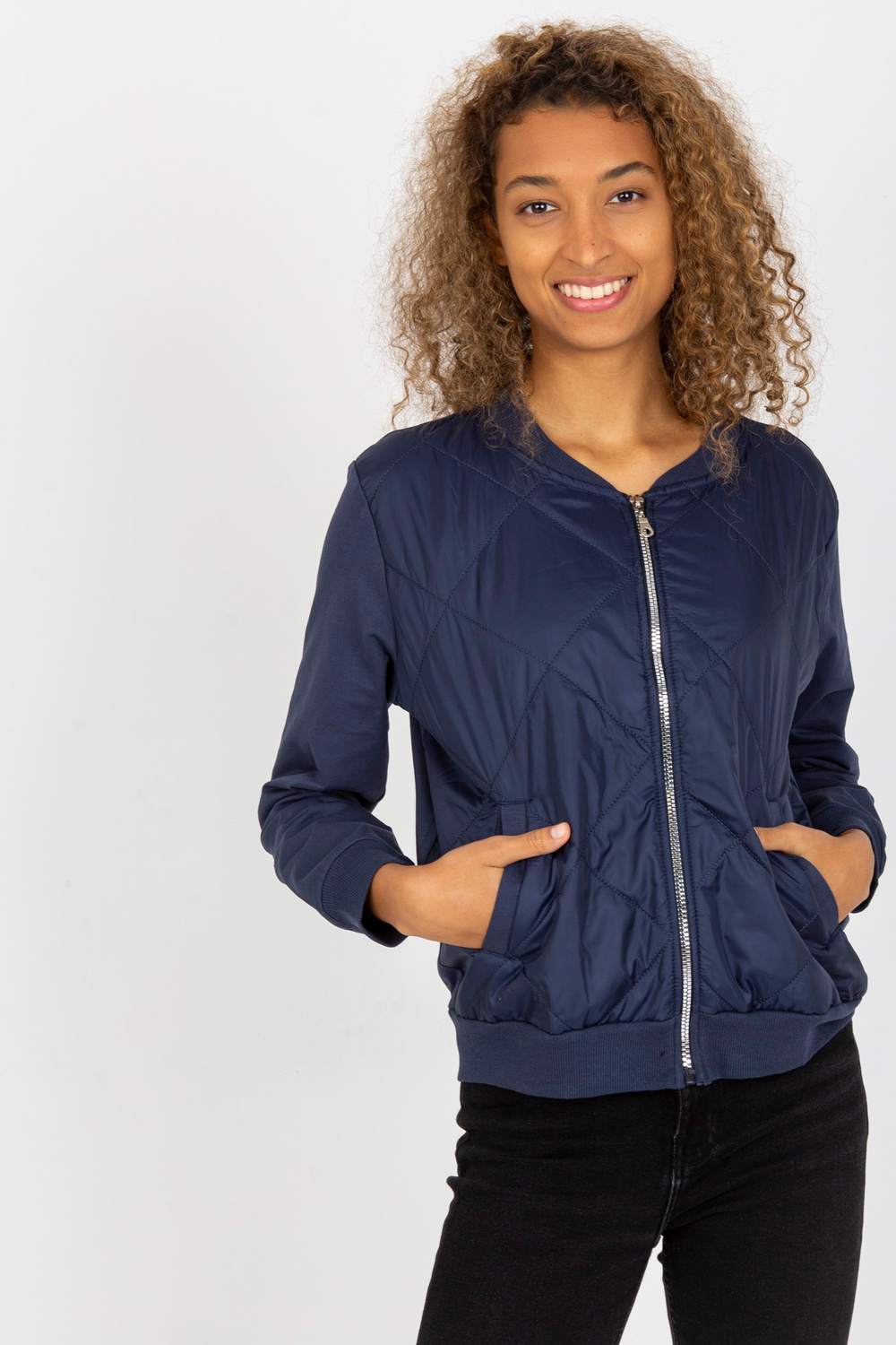Tumši zils stepēts bomber džemperis ar kabatām RUE PARIS