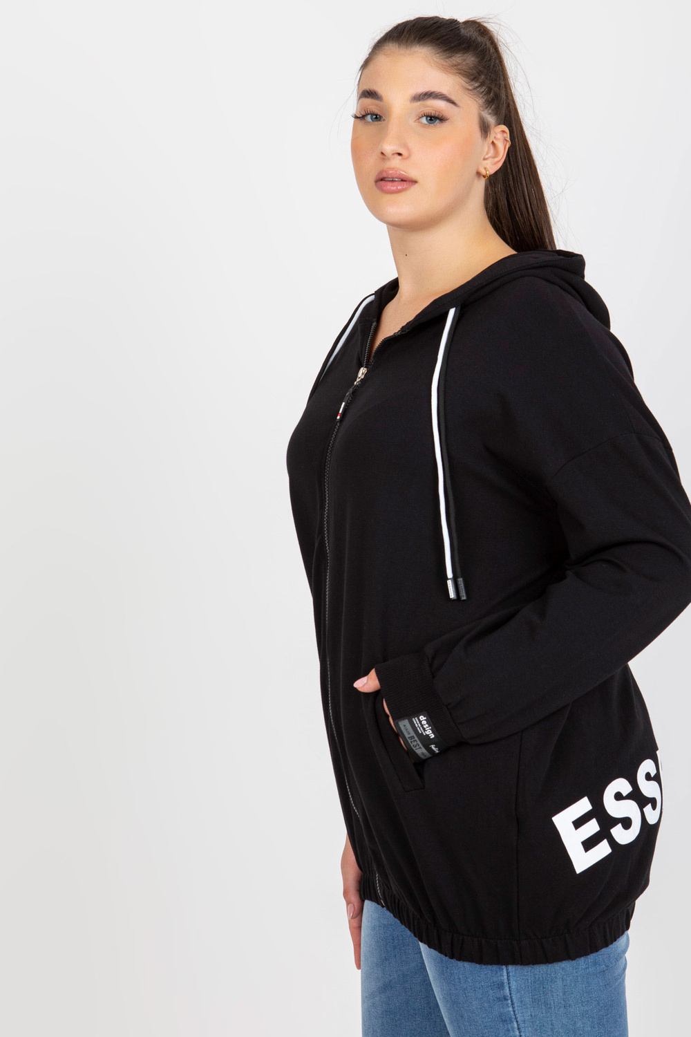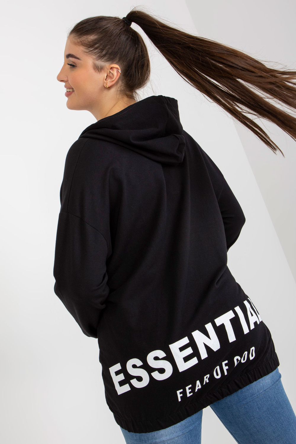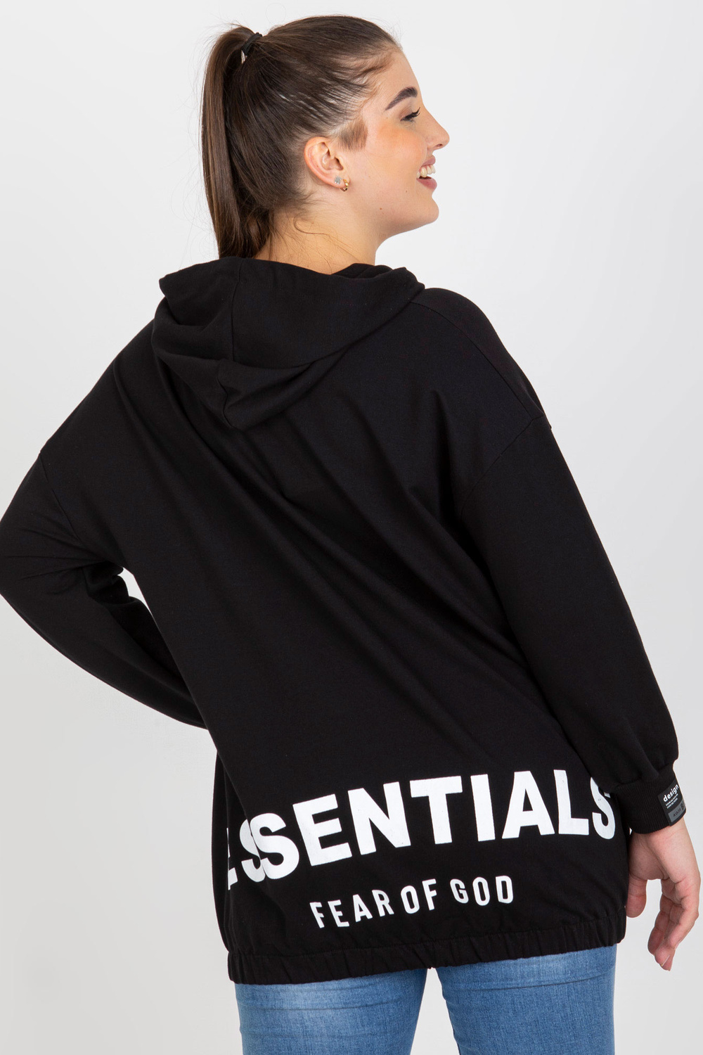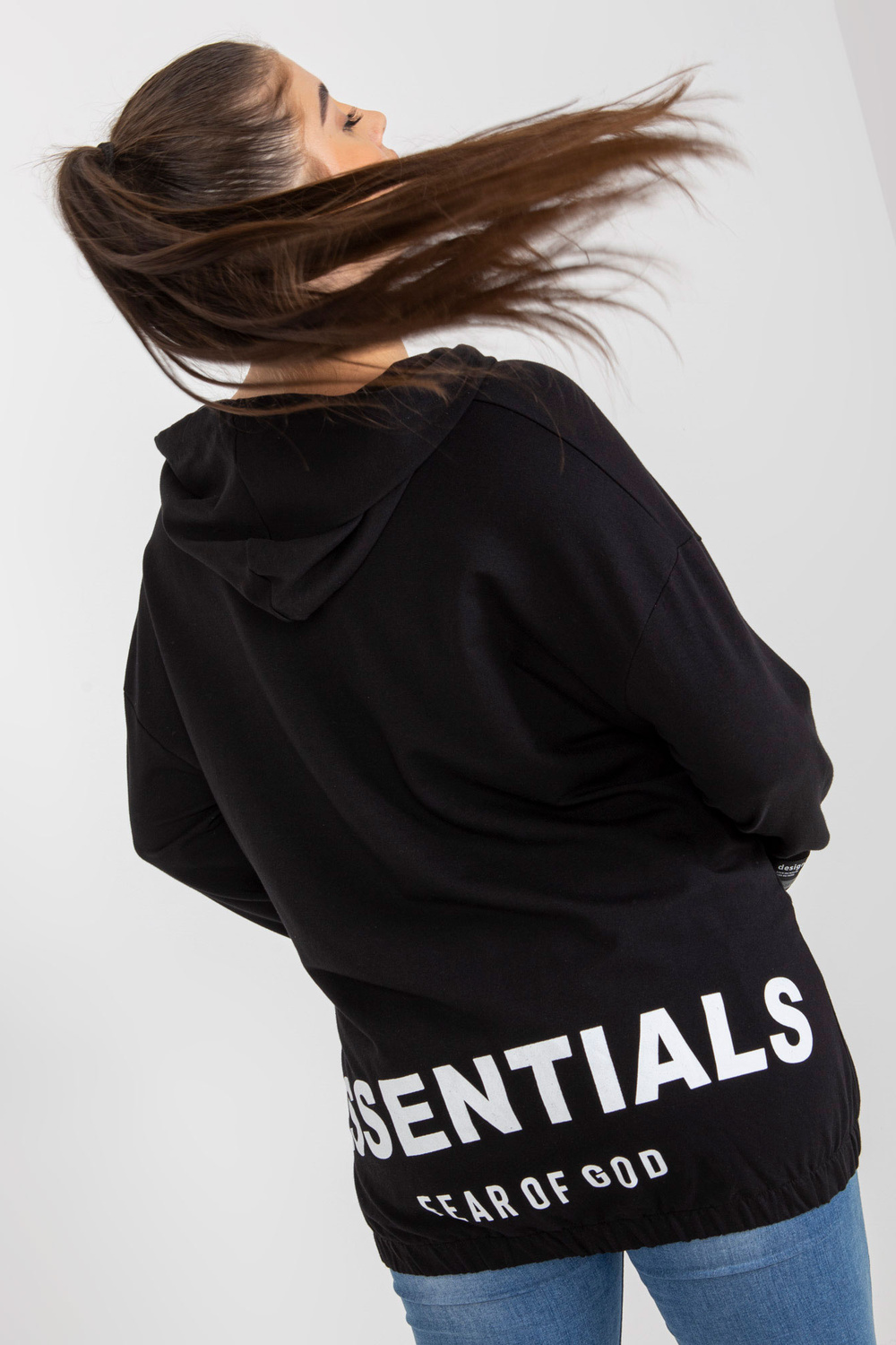 Melns liela izmēra sporta krekls ar uzrakstiem aizmugurē.