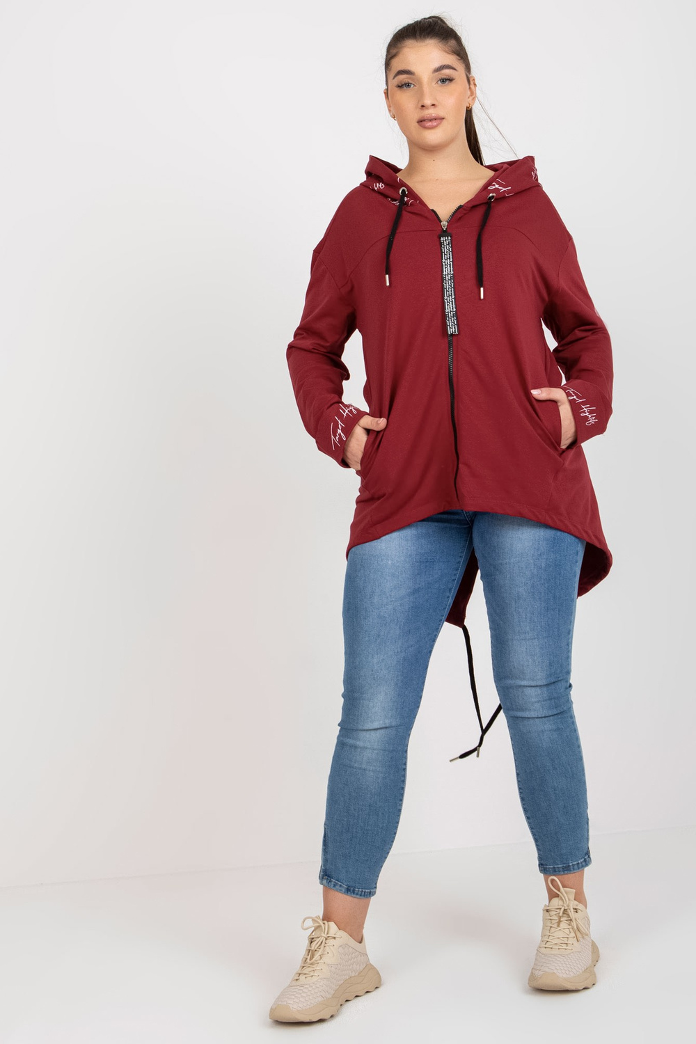 Burgundijas liela izmēra sporta krekls ar rievojumiem.