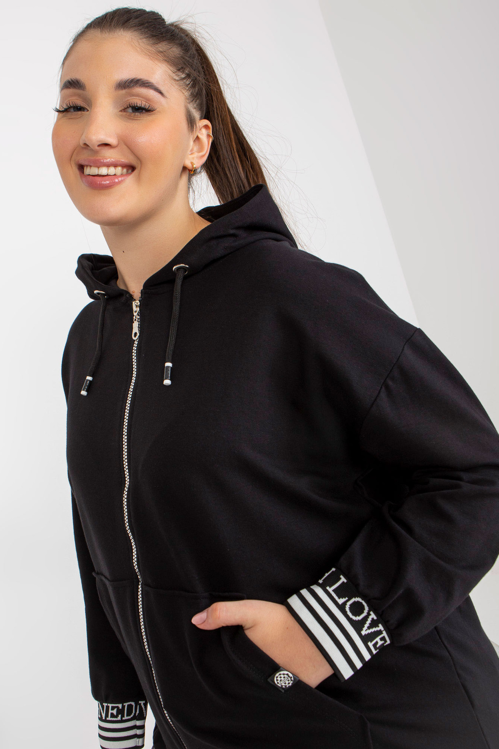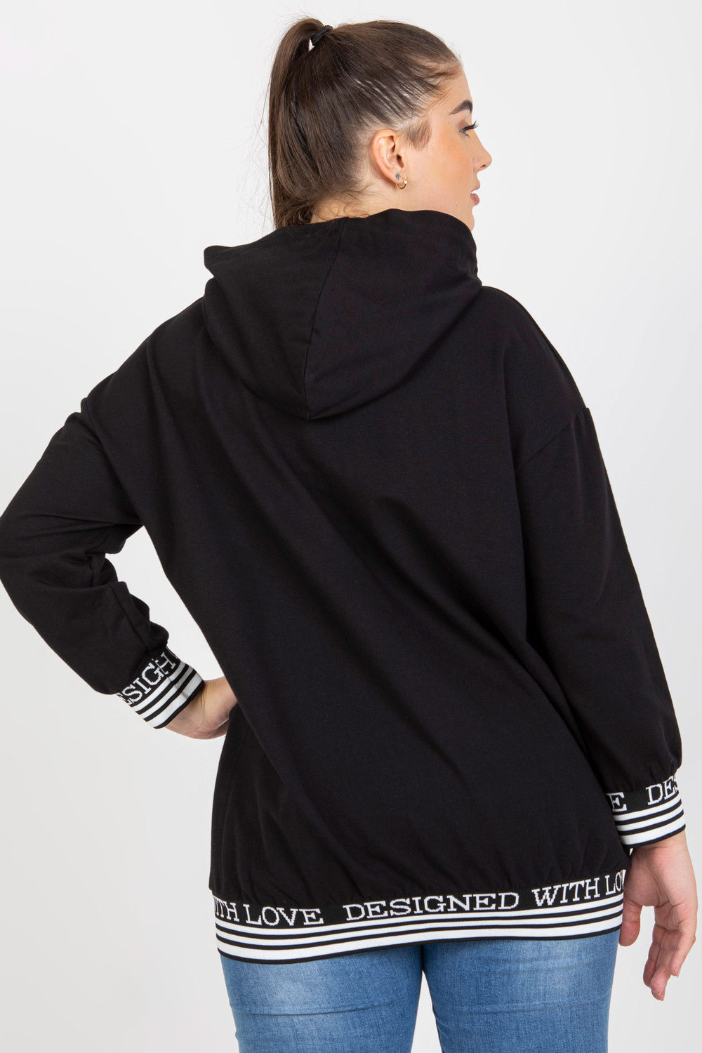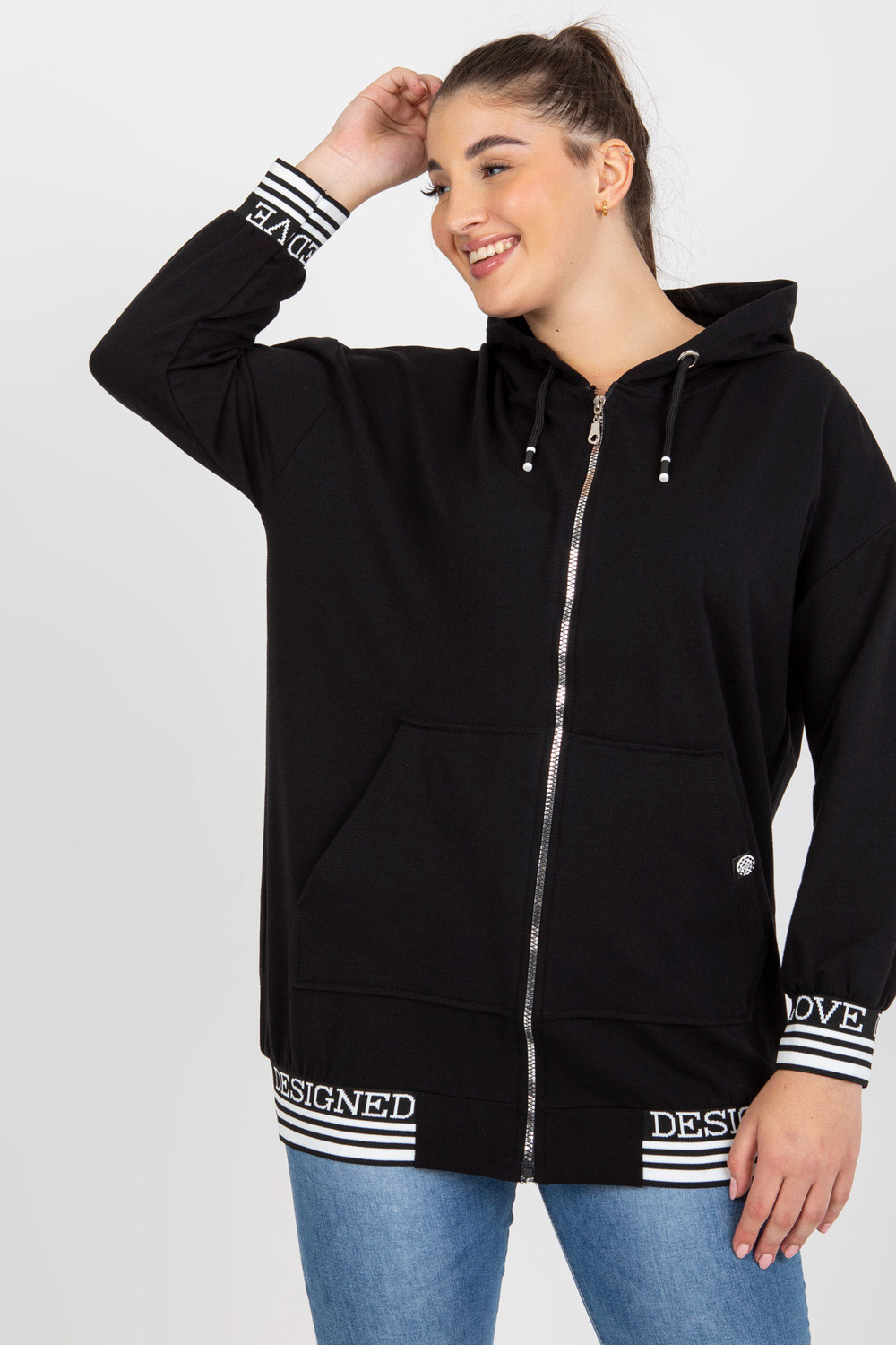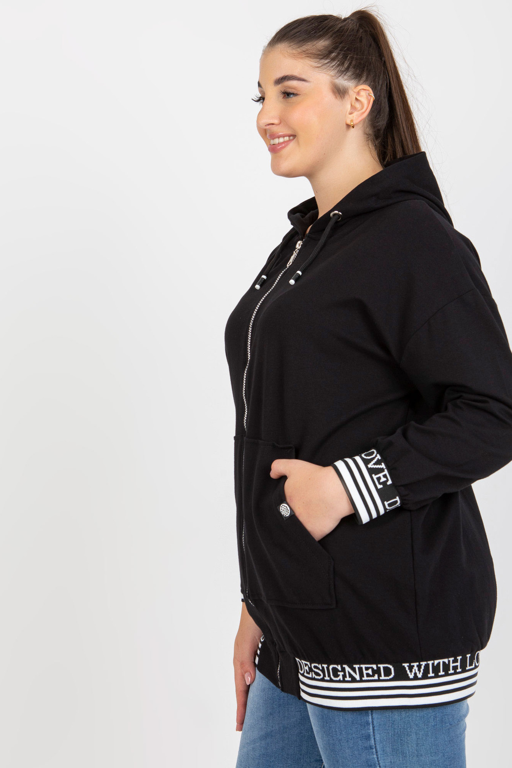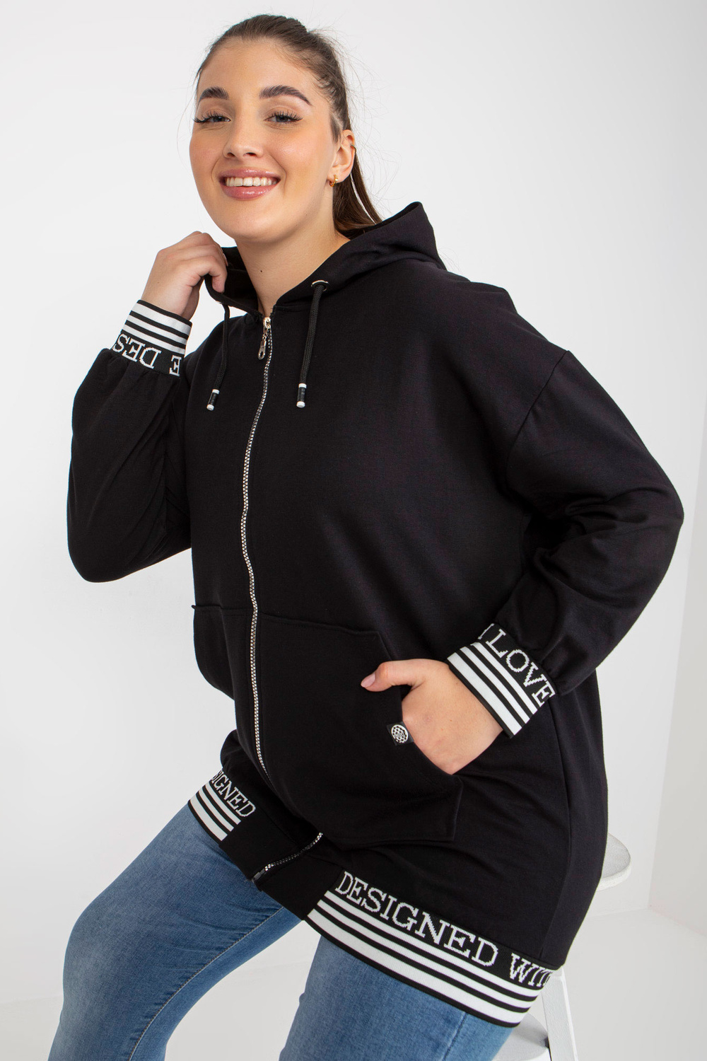 Melns lielizmēra sieviešu džemperis ar kabatām.