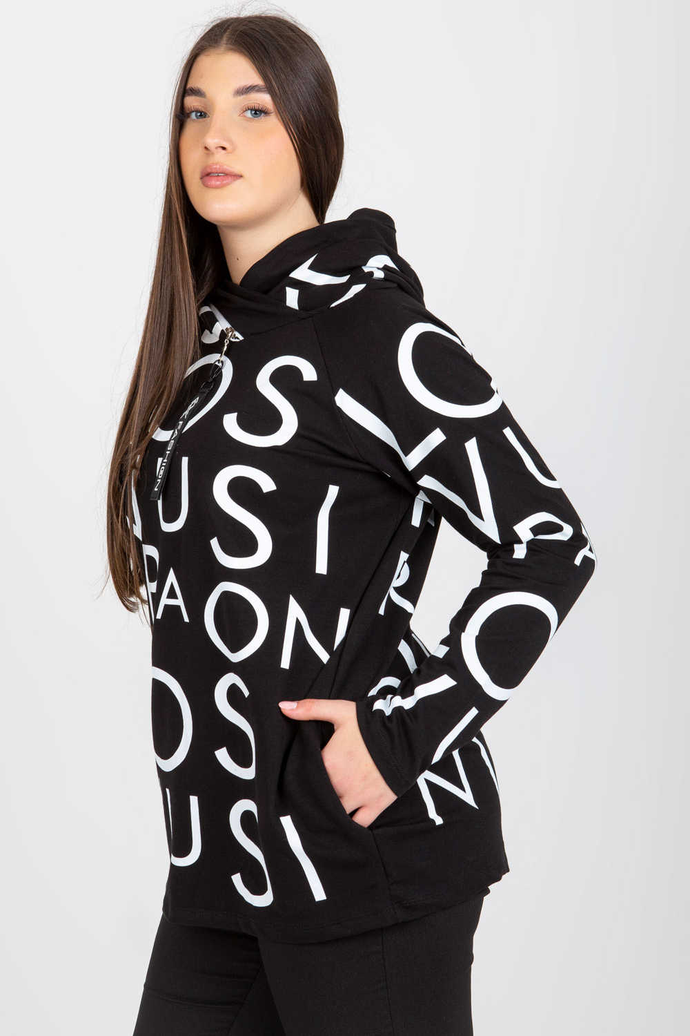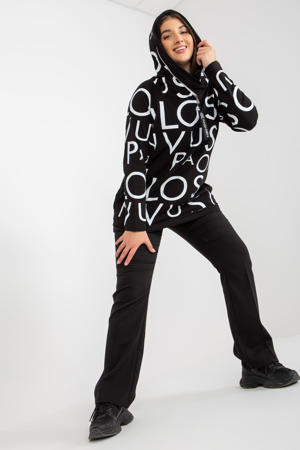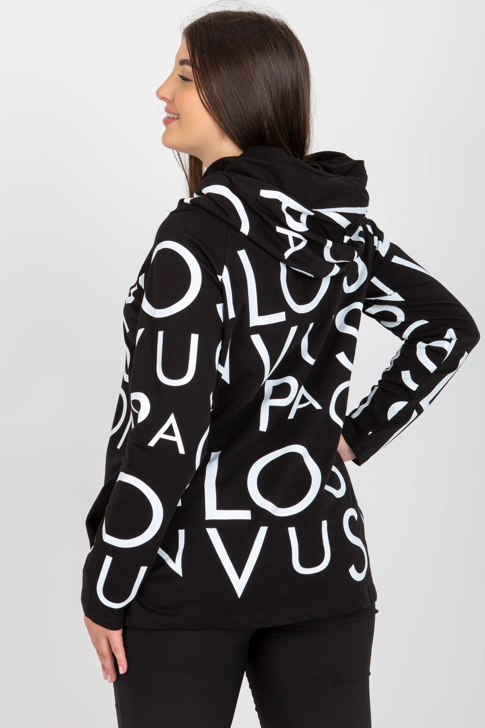 Melns sieviešu lielizmēra kapucis ar apdruku