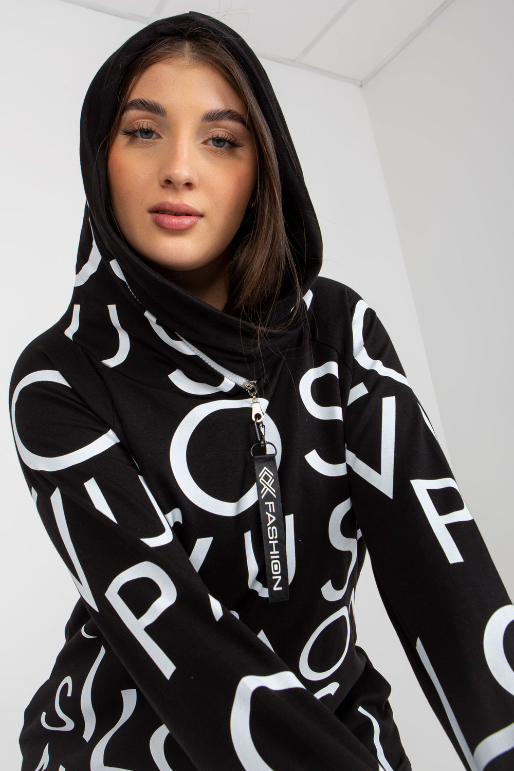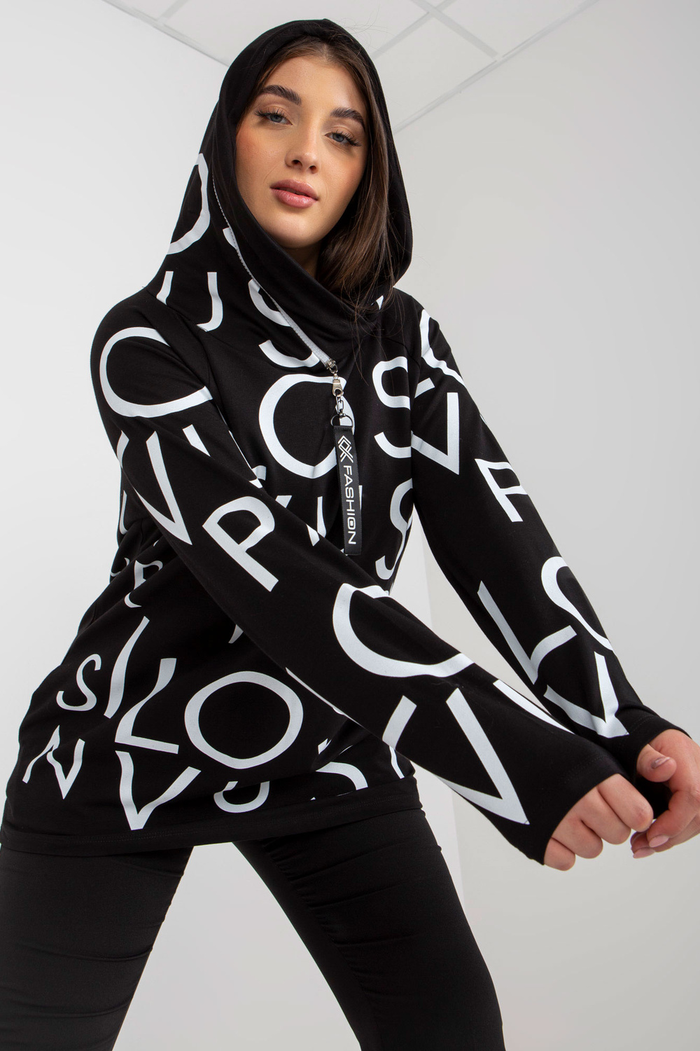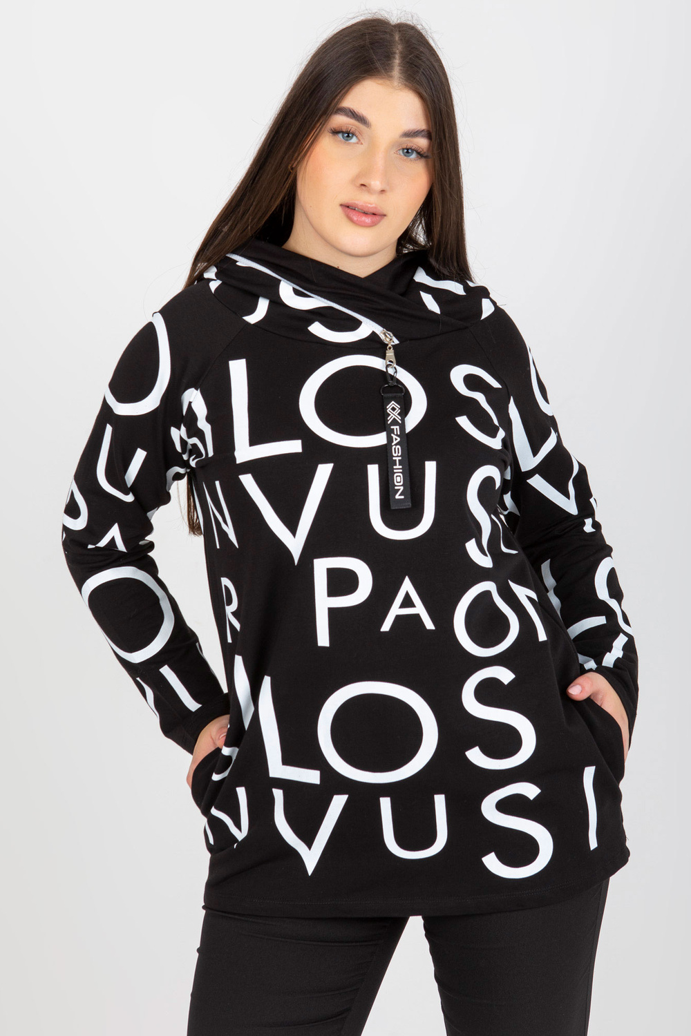 Melns sieviešu lielizmēra kapucis ar apdruku