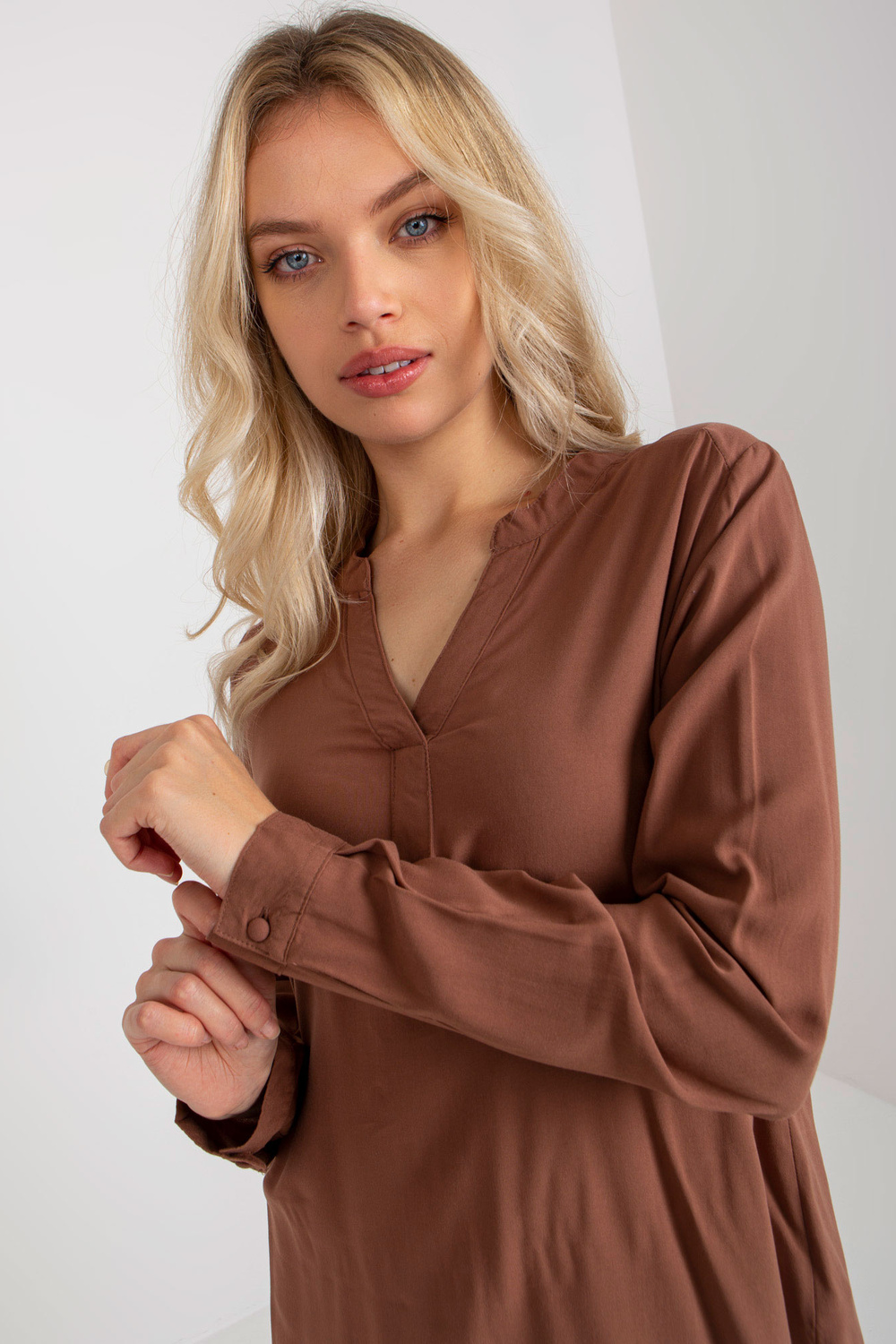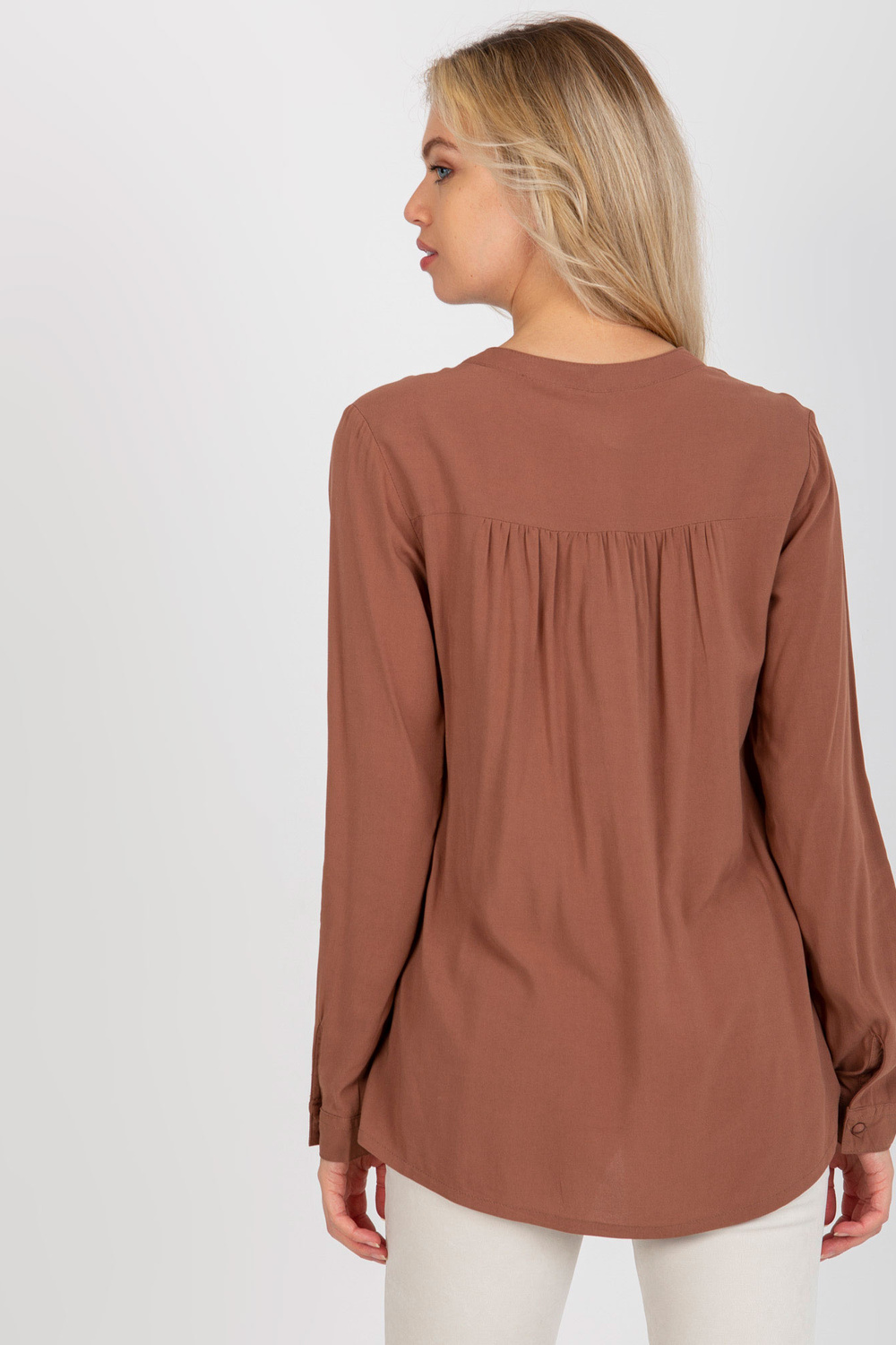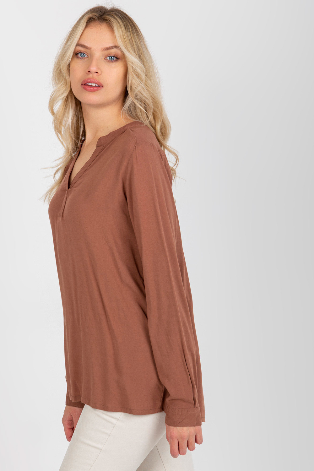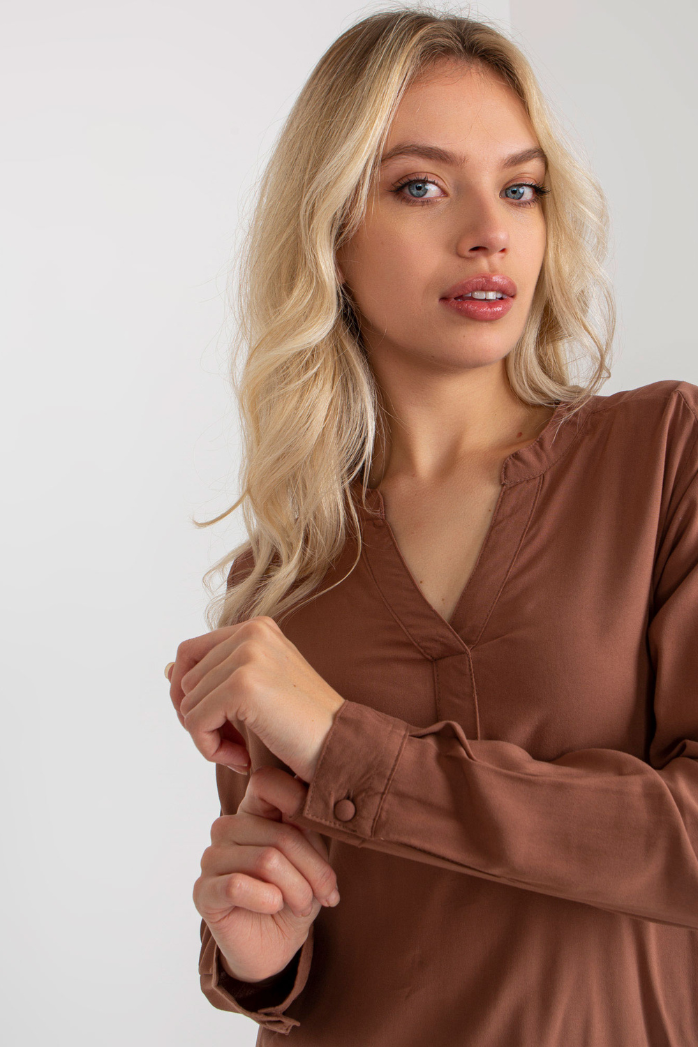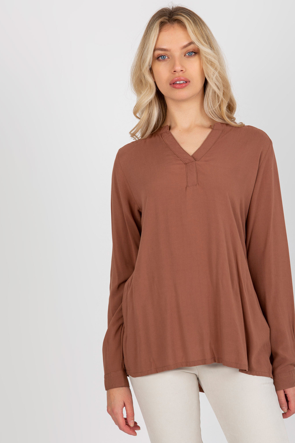 Brūna brīva blūze ar V veida kakla izgriezumu SUBLEVEL