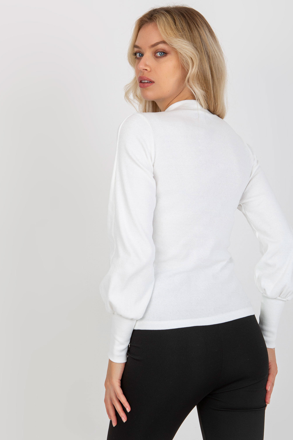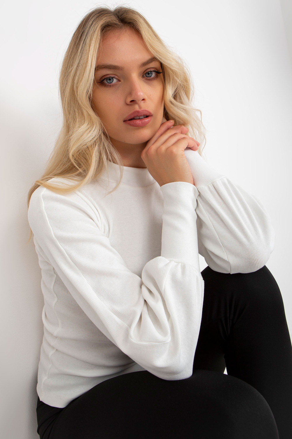 Balta rievota pamata blūze ar platām piedurknēm RUE PARIS.