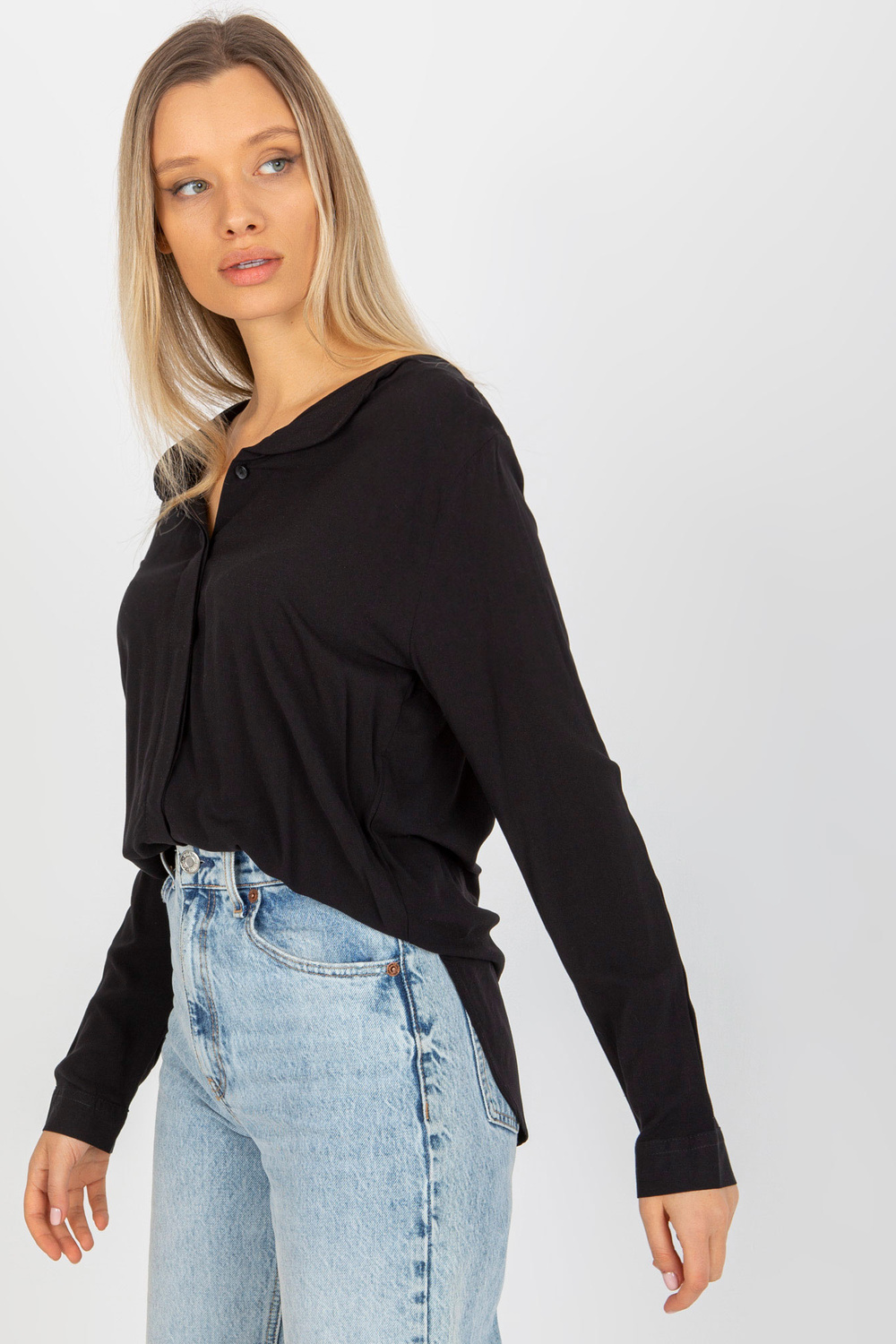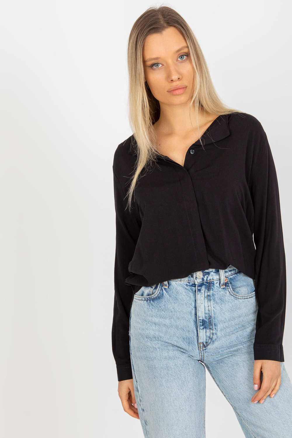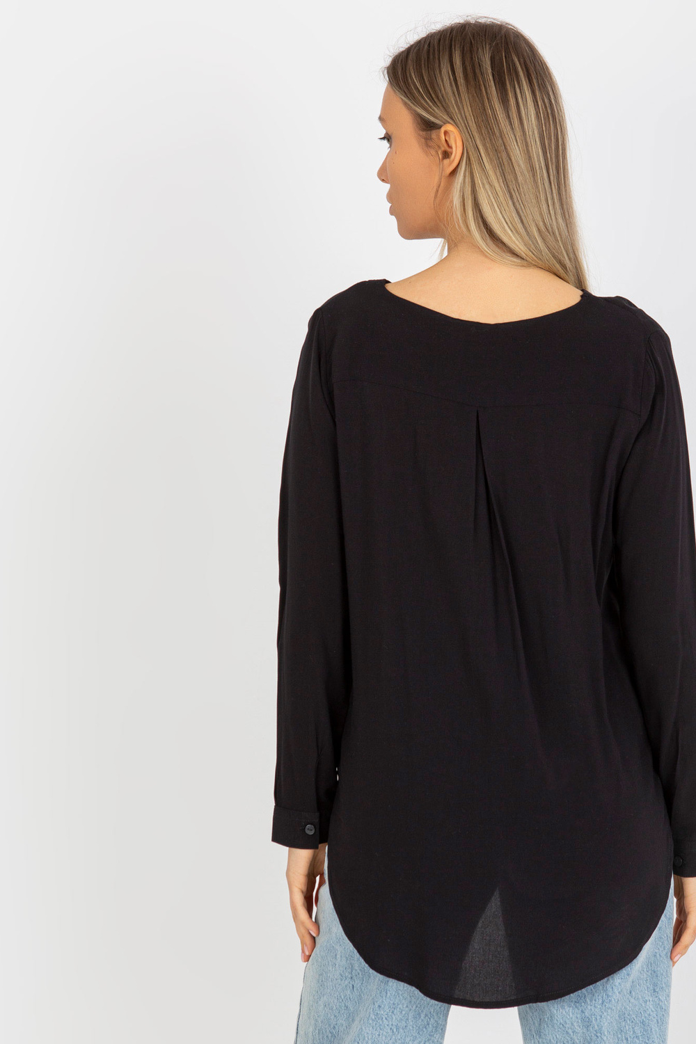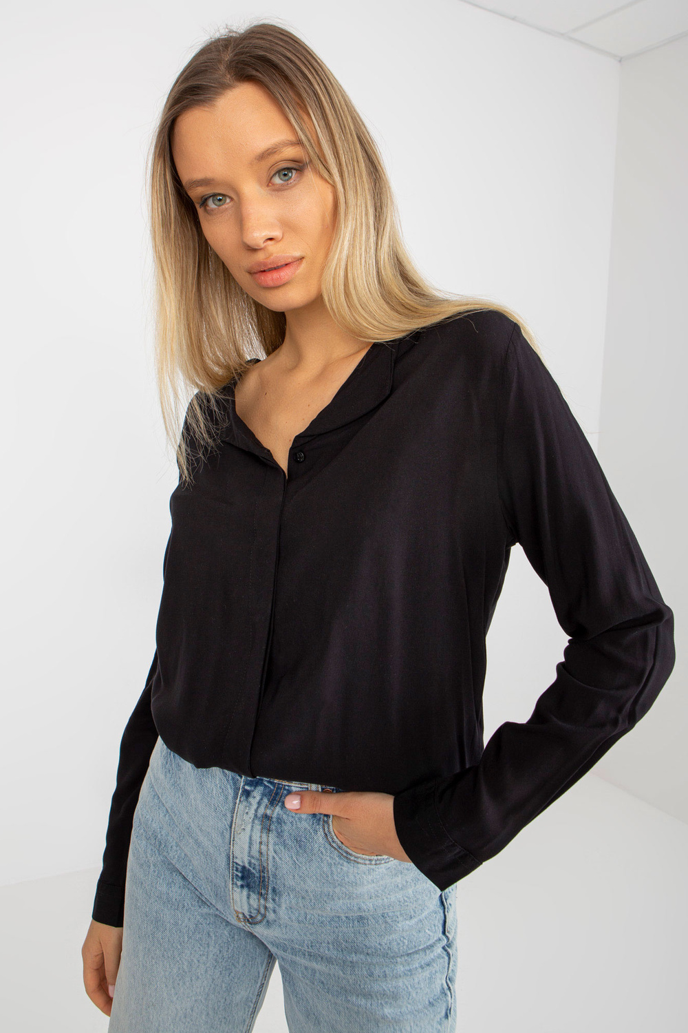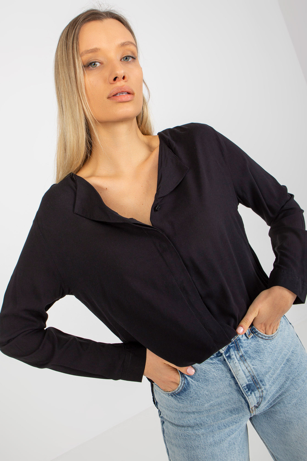 Melna viskozes kreklblūze ar V veida kakla izgriezumu SUBLEVEL .