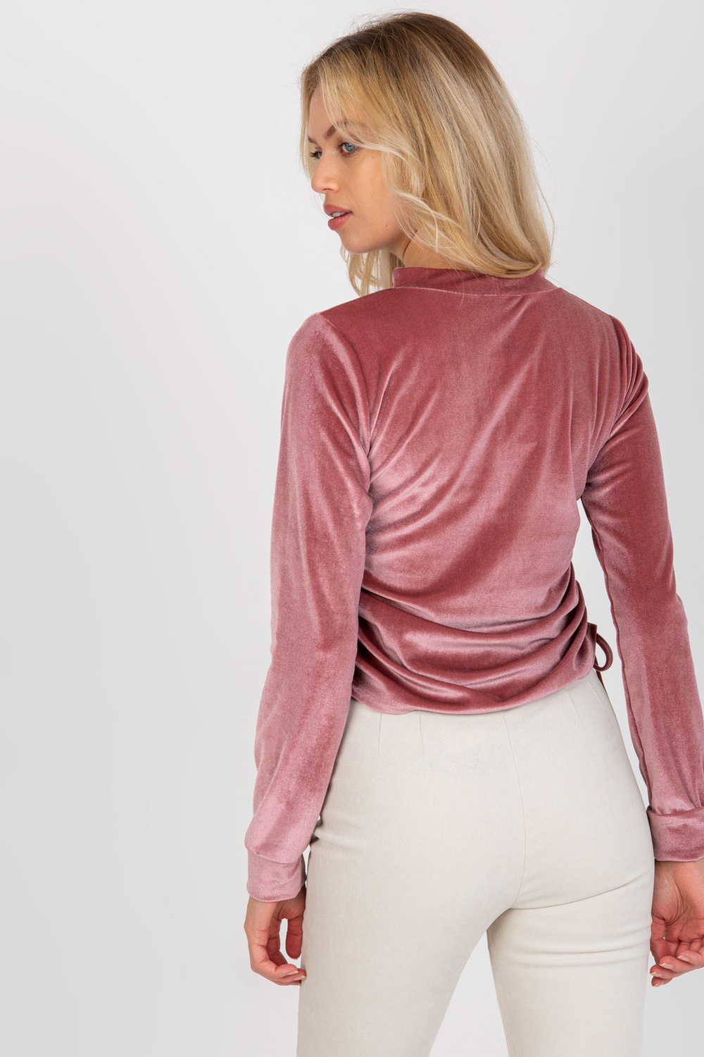 Netīri rozā īsa velūra blūze ar daiviņām.