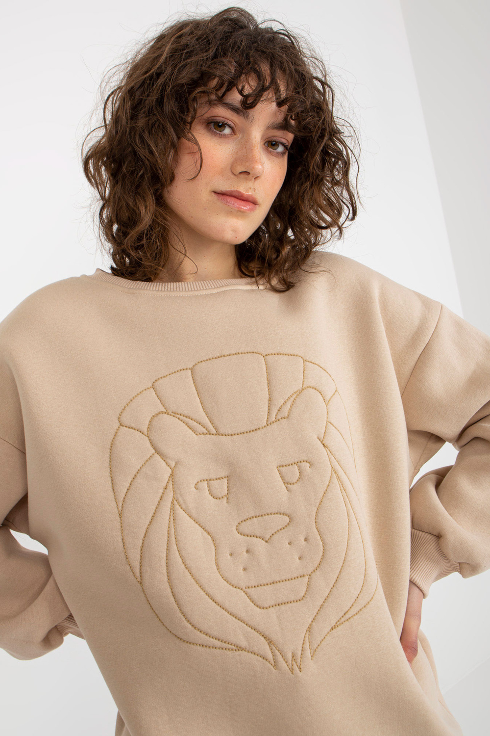 Bēšā krāsā izolēts sporta krekls bez kapuces ar izšuvumu.