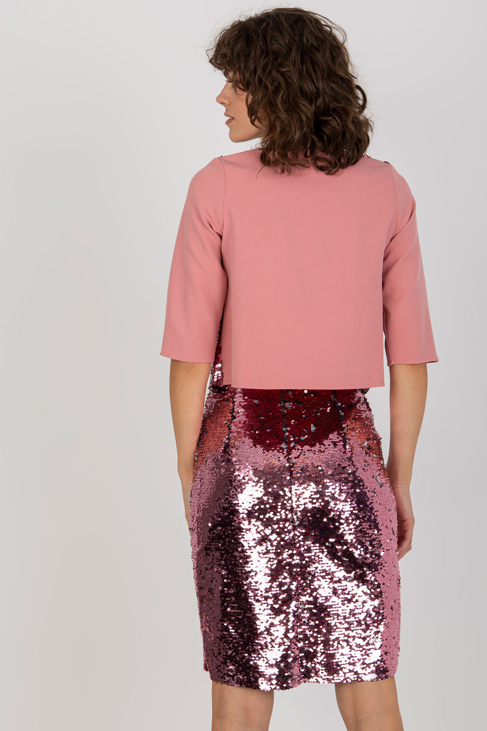 Netīri rozā fliteriem svinīga blūze ar 3/4 piedurknēm.