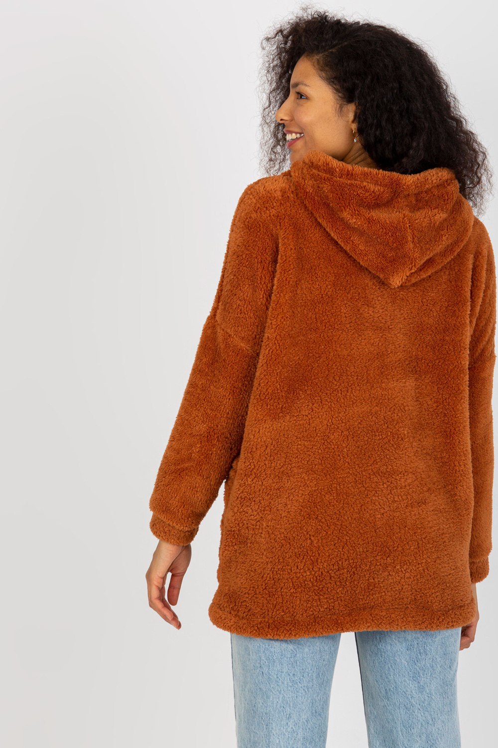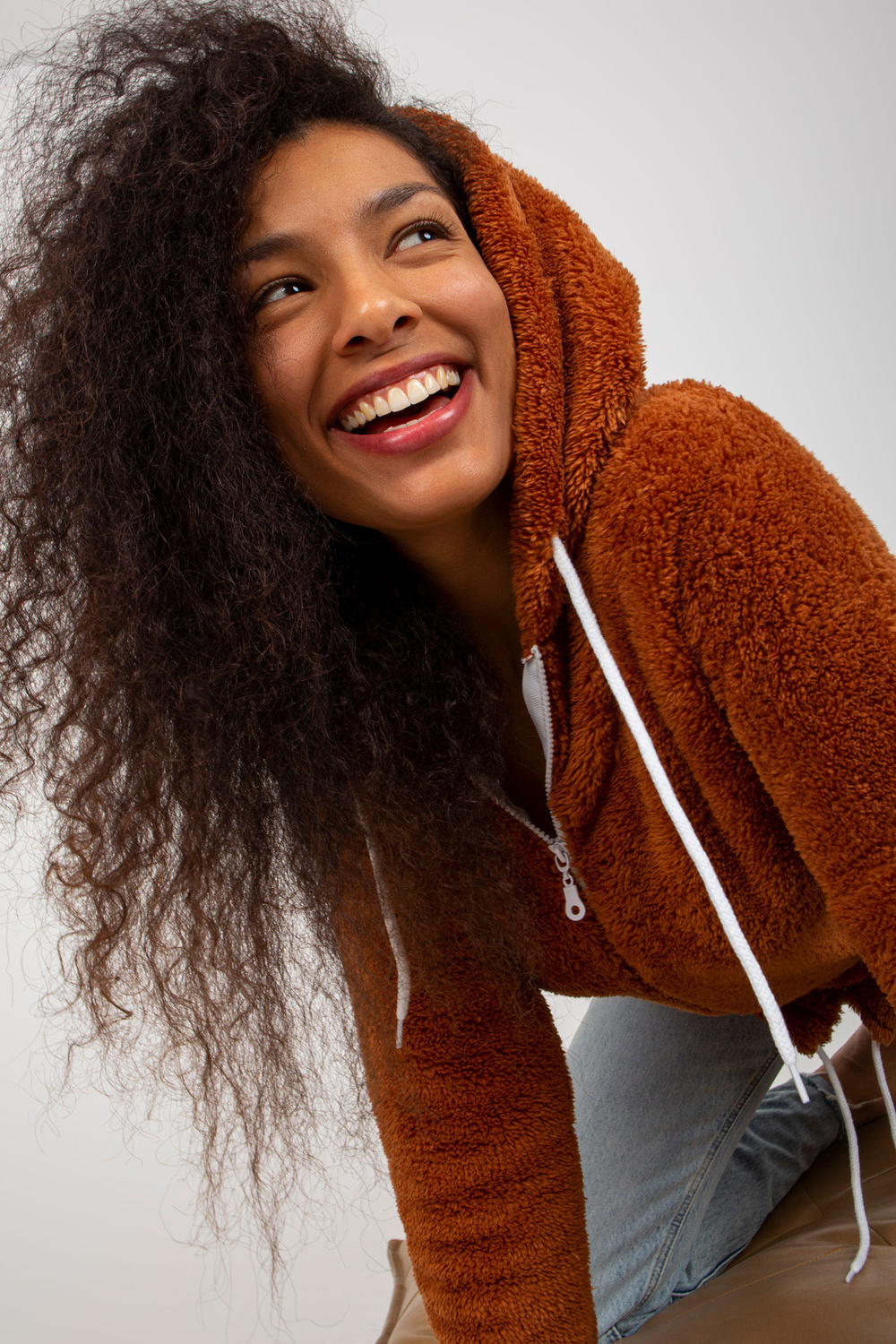 Gaiši brūnas kažokādas sporta krekls ar kapuci RUE PARIS.