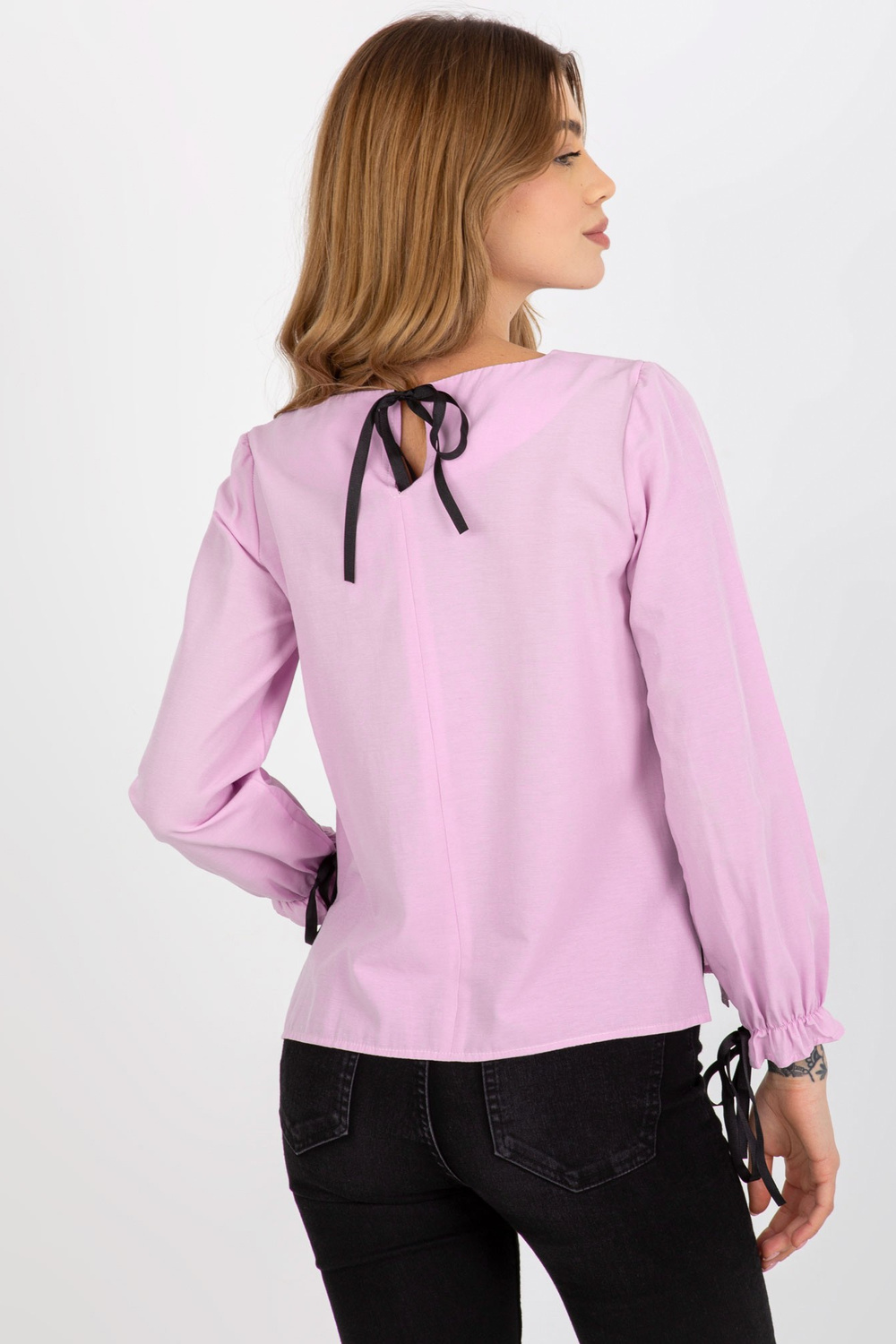 Gaiši violeta svinīga blūze ar iesējumu un mežģīnēm.
