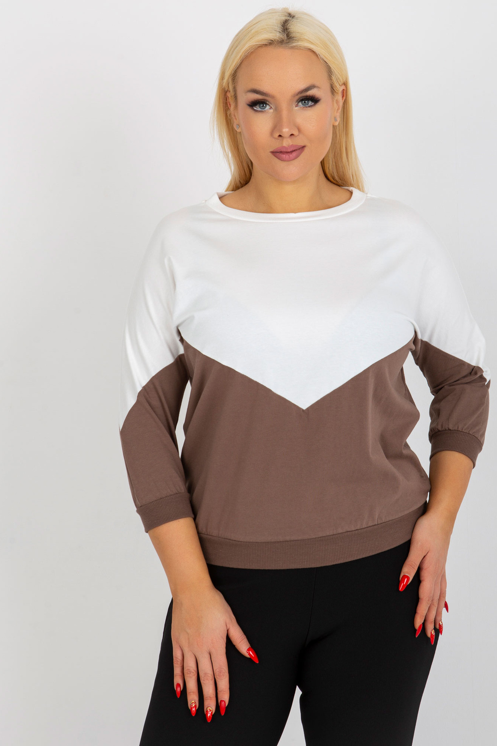 Ekrūbrūna liela izmēra pamata blūze ar apaļu kakla izgriezumu.