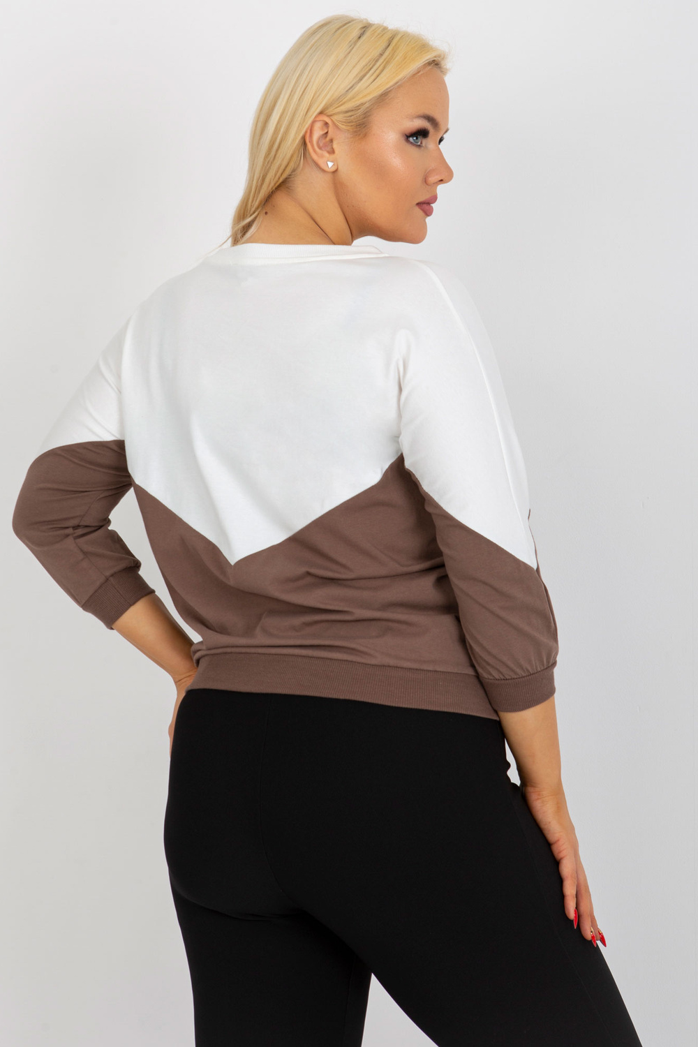 Ekrūbrūna liela izmēra pamata blūze ar apaļu kakla izgriezumu. Produkta kods: RV-BZ-8462.40P Dominējošais raksts: gluds Stils: ikdienišķs gadījums: ikdienišķs, darbam, pastaigai, pilsētā Blūzes izmēri viena izmēra izmērā, mērīti plakanā: platums zem t