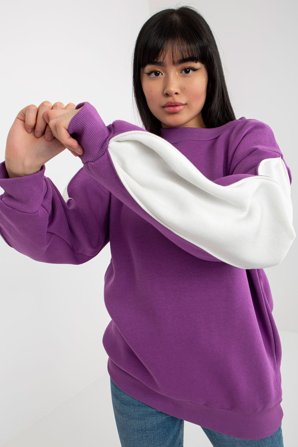 Violets džemperis bez kapuces ar šķēluma piedurknēm