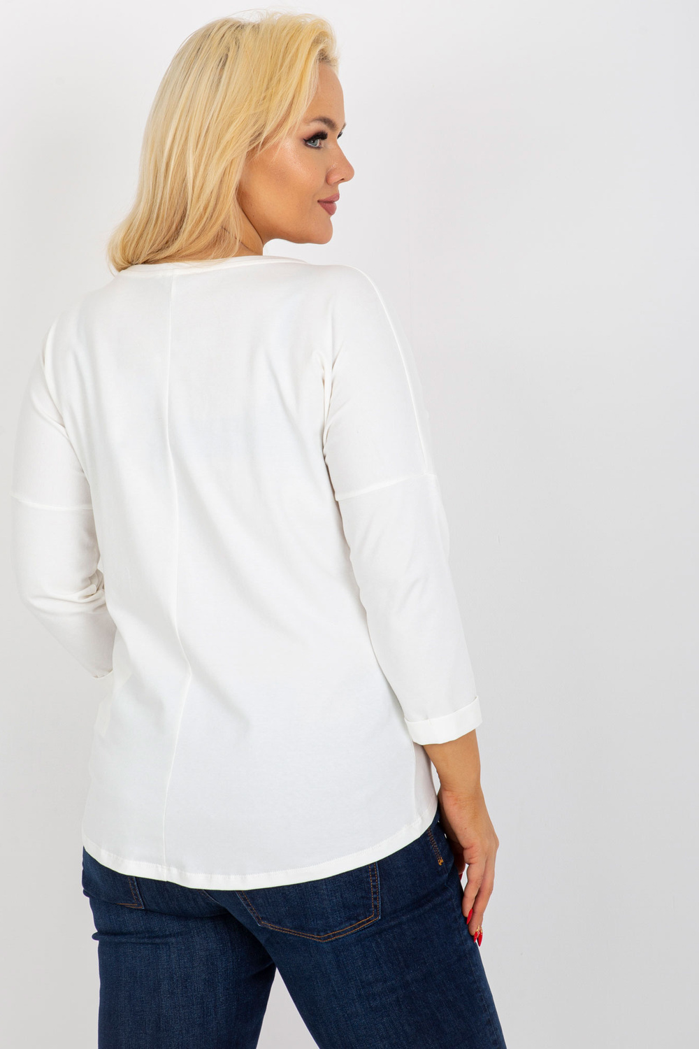 Ecru plus izmēra blūze ar apdruku un garāku muguru.