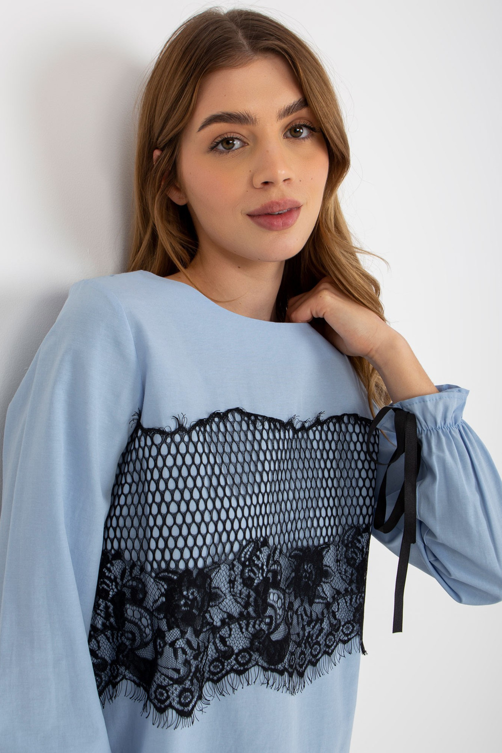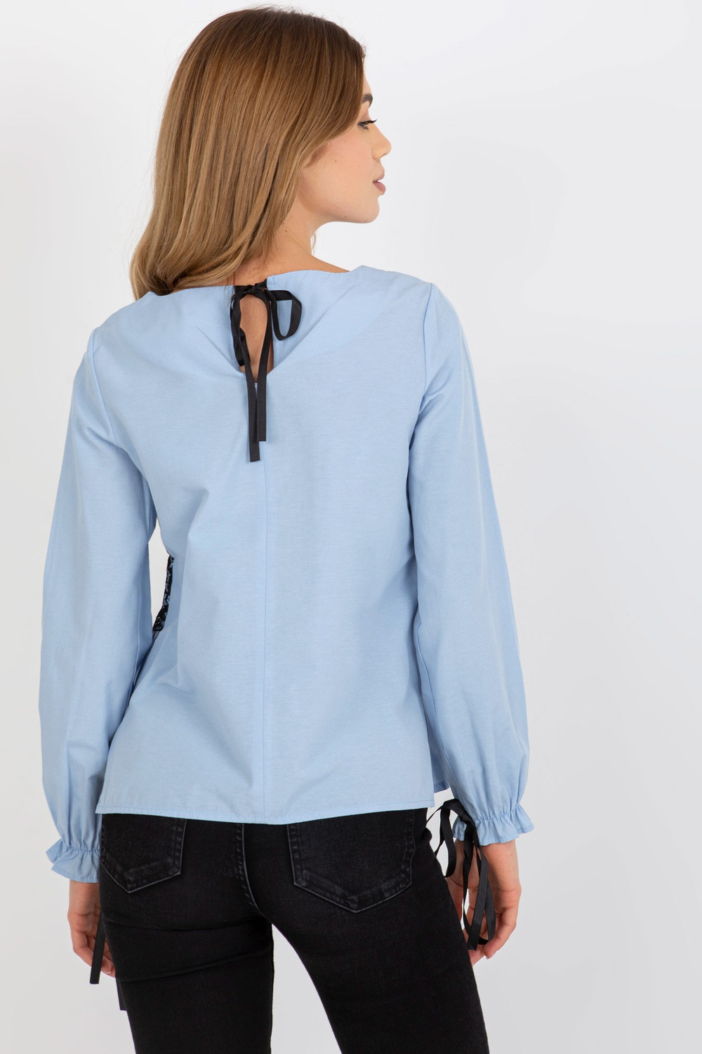 Gaiši zila kokvilnas svinīga blūze ar iesējumu.