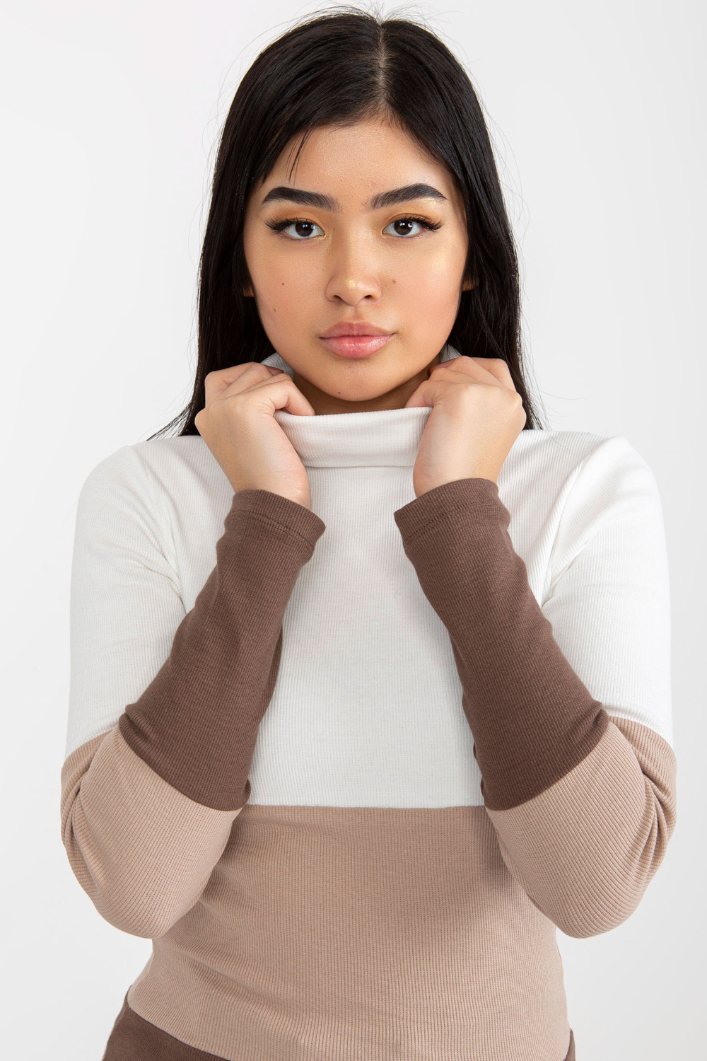 Ekrūnbrūna rievota pamata blūze ar bruņurupuču apkakli RUE PARIS.