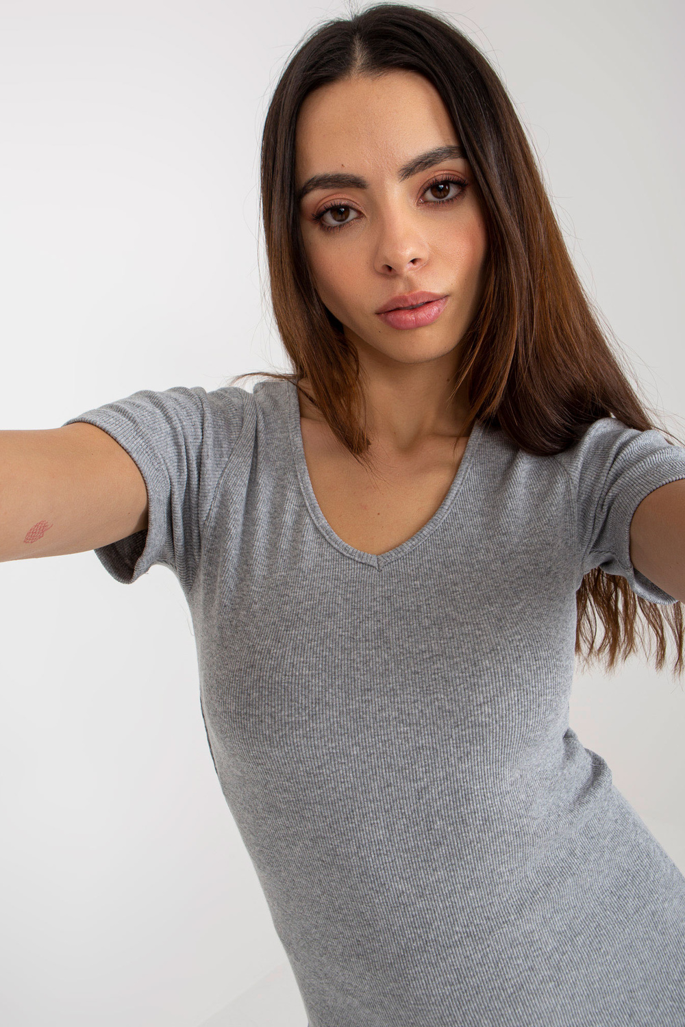 Pelēka rievota pamata blūze ar īsām piedurknēm.