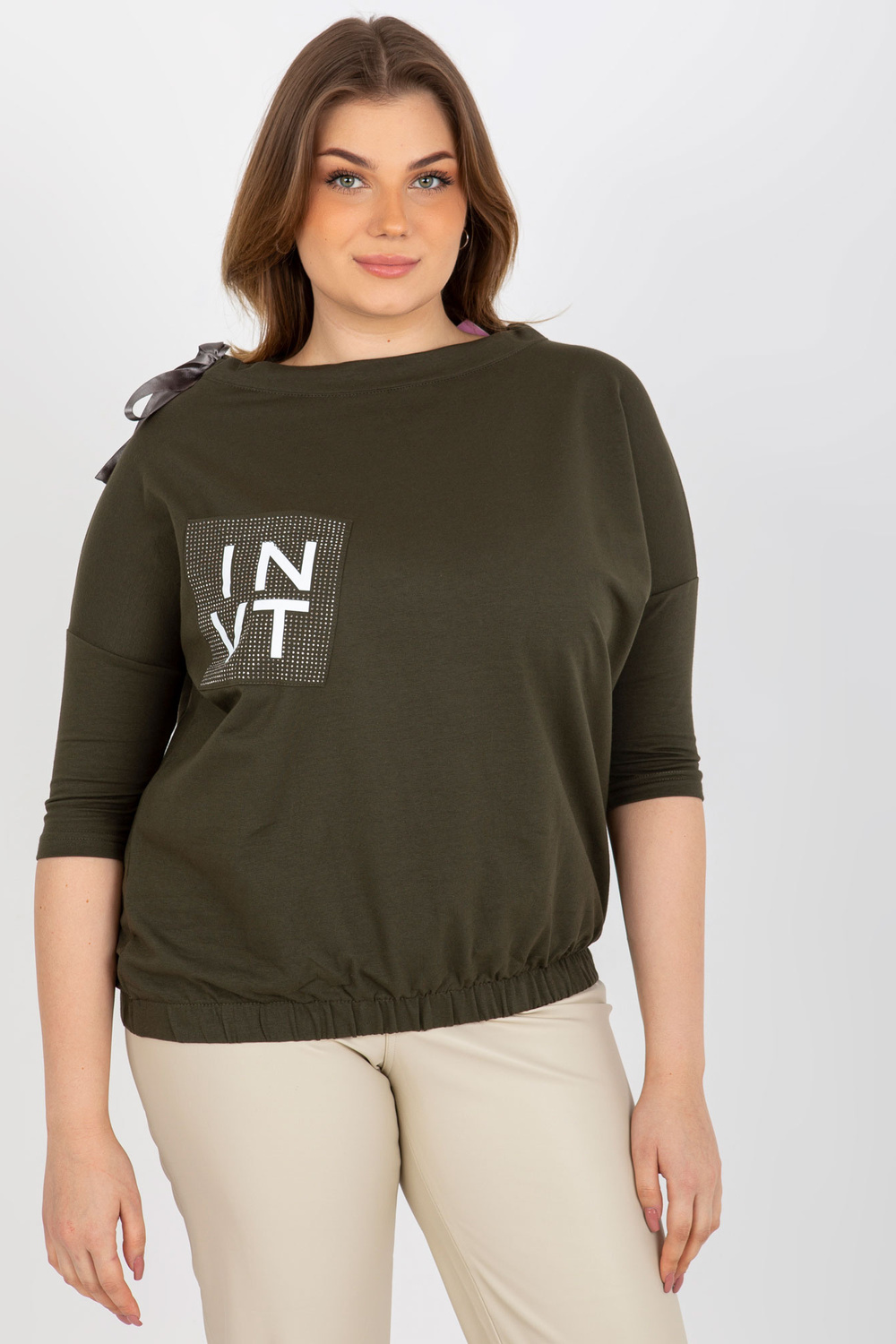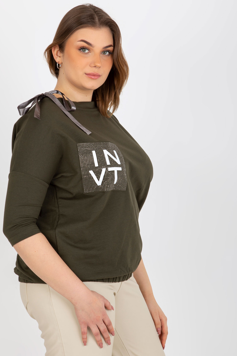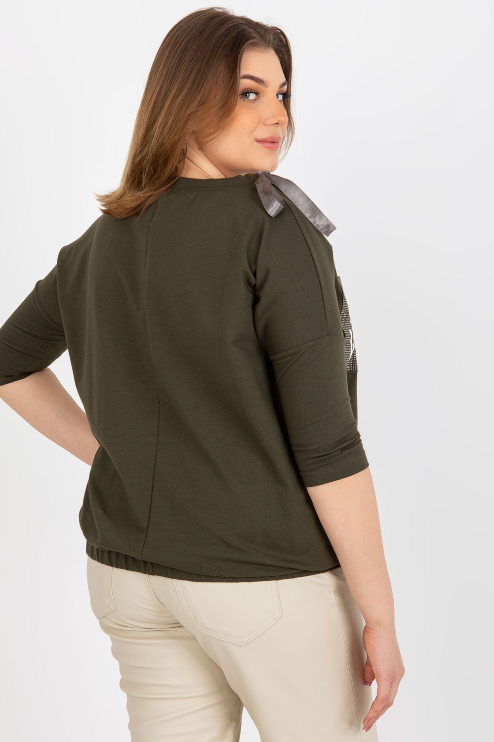 Haki krāsas sieviešu liela izmēra blūze ar kabatu un iesiešanu