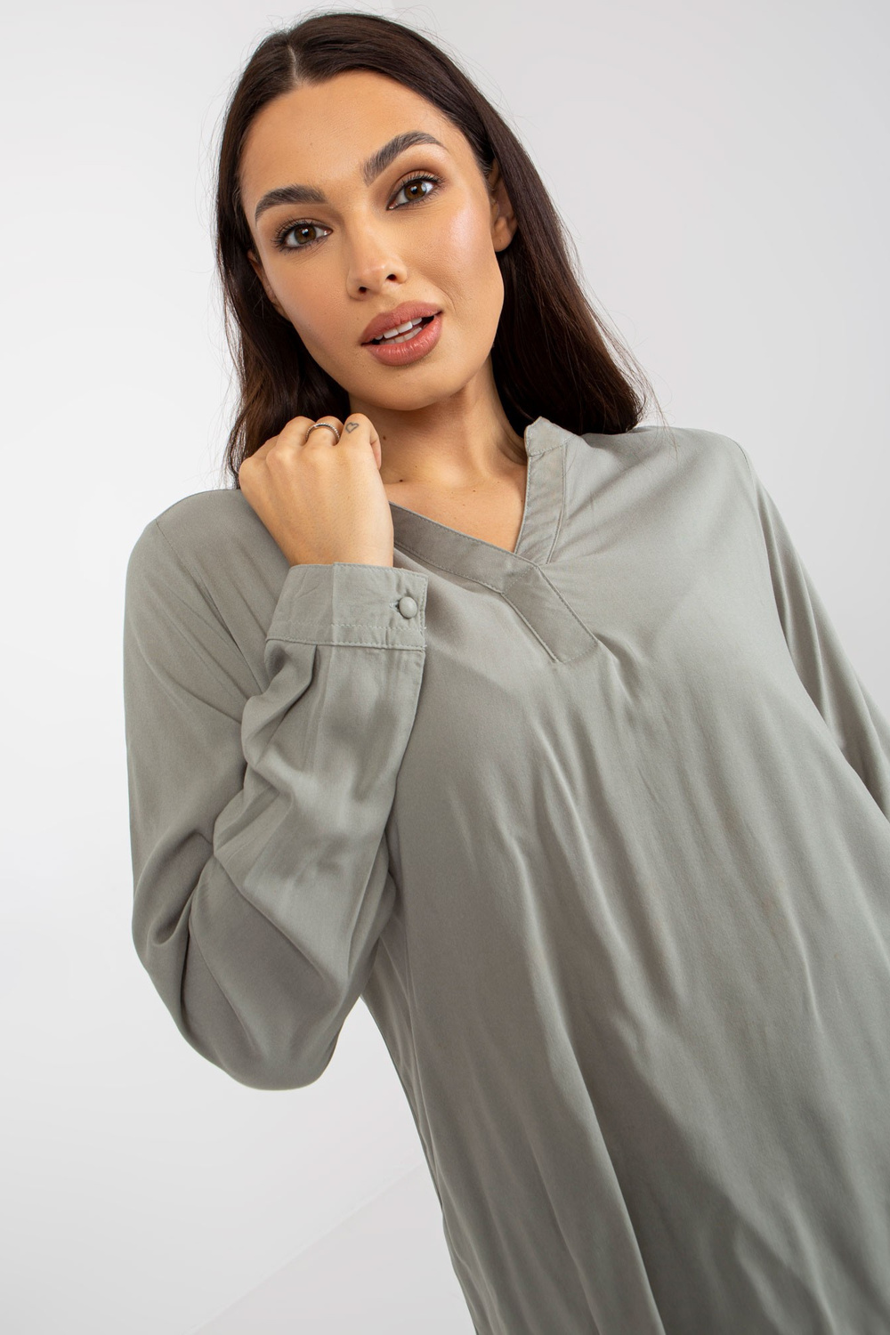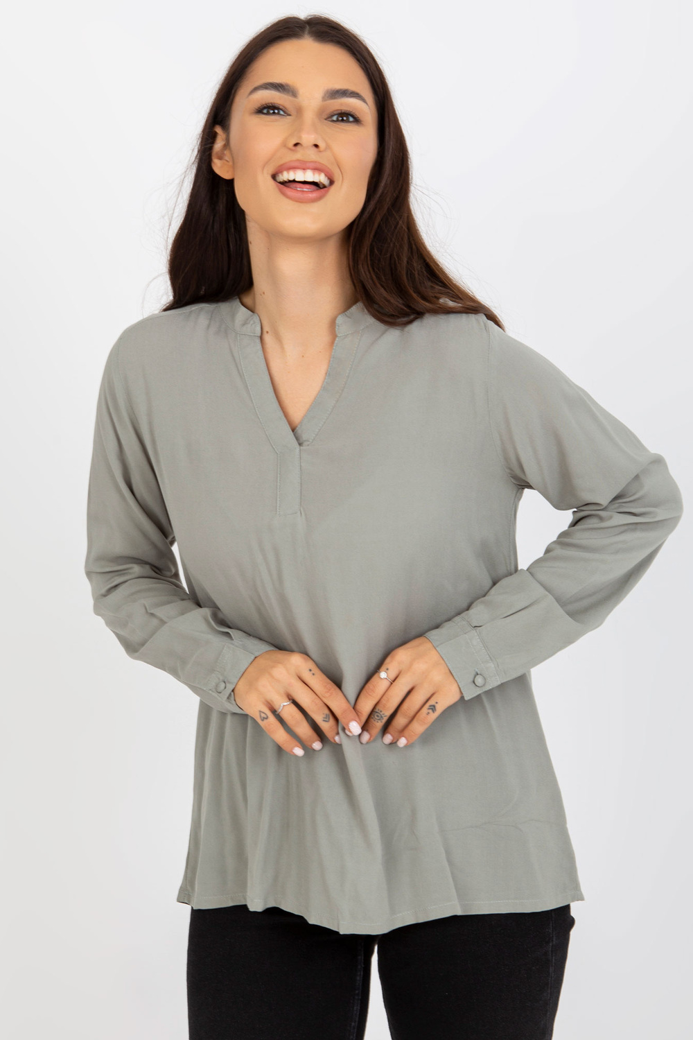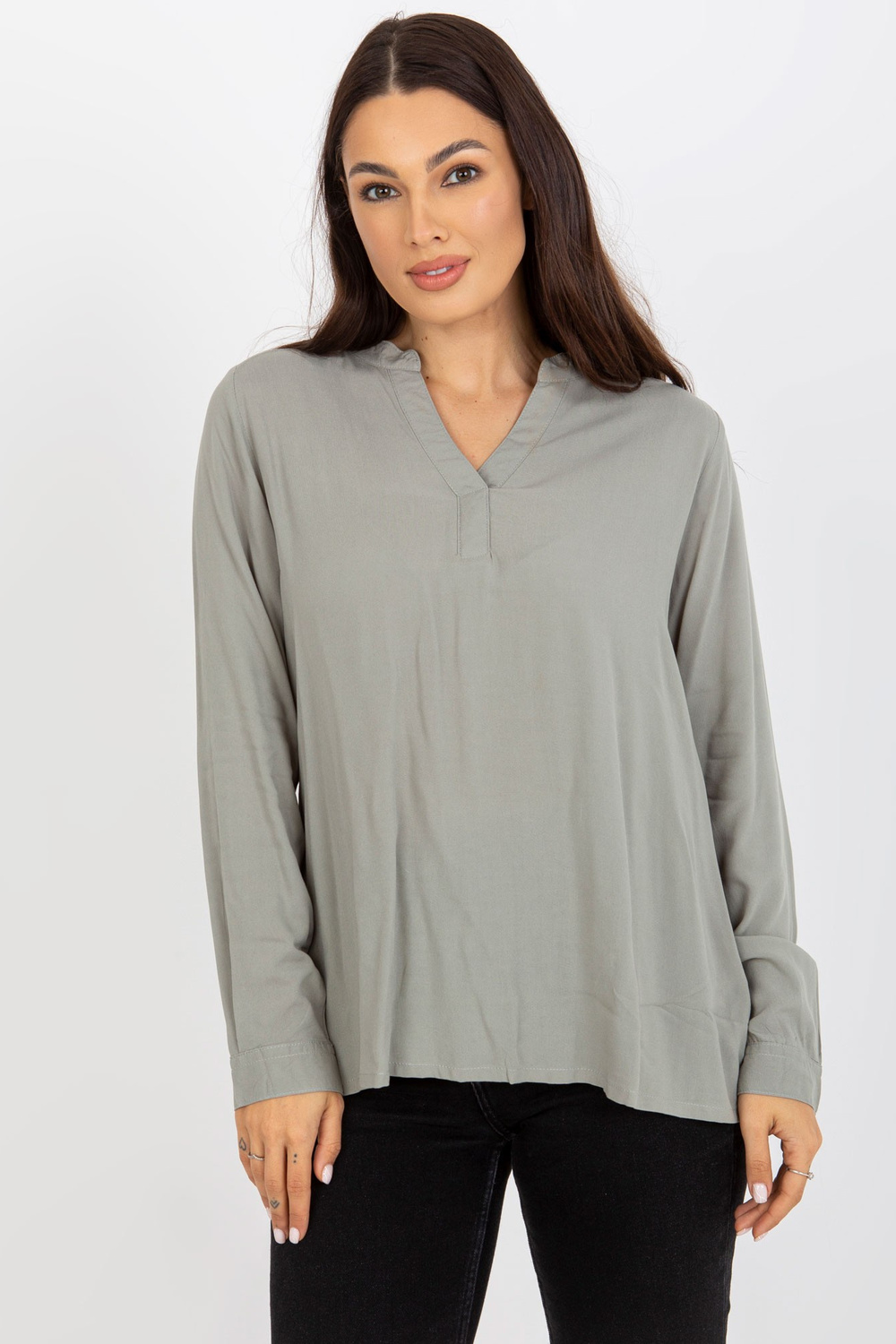 Gaiši zaļa viskozes blūze ar V veida kakla izgriezumu SUBLEVEL .