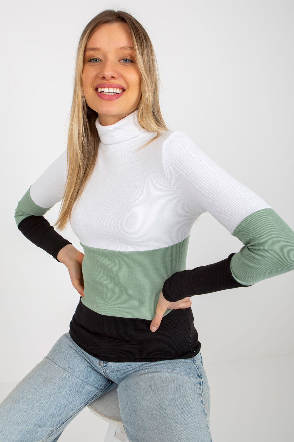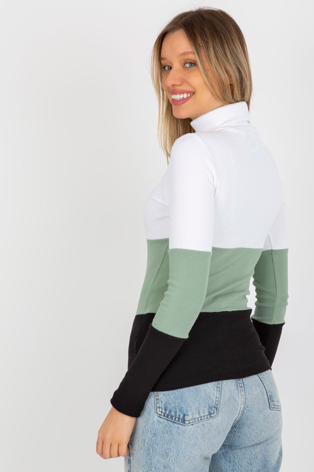 Ekruli melna pieguļoša pamata blūze ar svītrainu bruņurupuču apkakli.