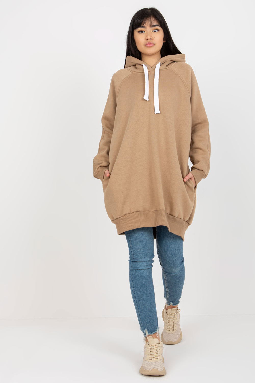 Tumši smilškrāsas garais sporta krekls ar kabatām.