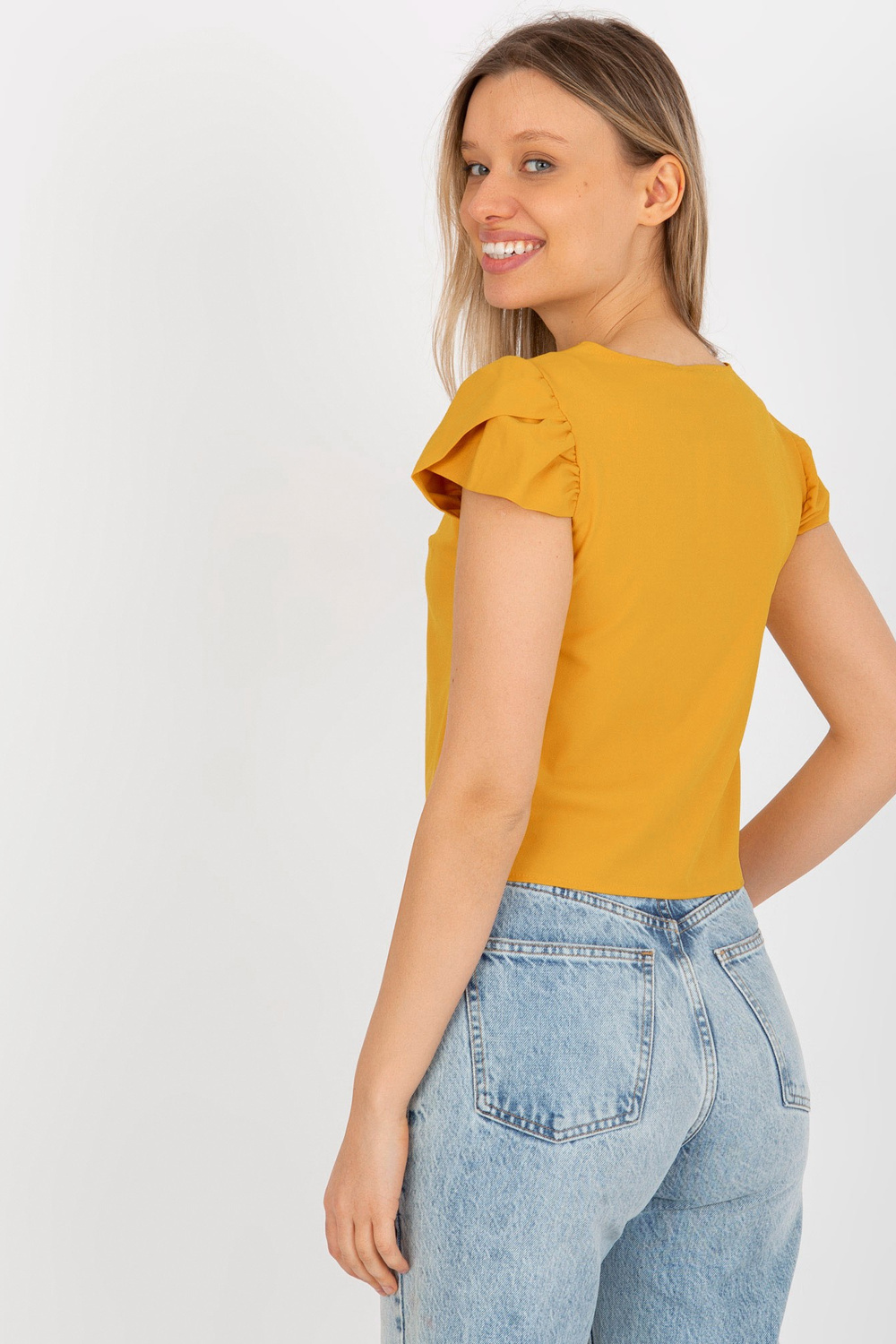 Tumši dzeltena īsa svinīga blūze ar kaklarotu