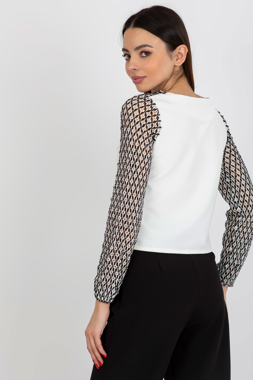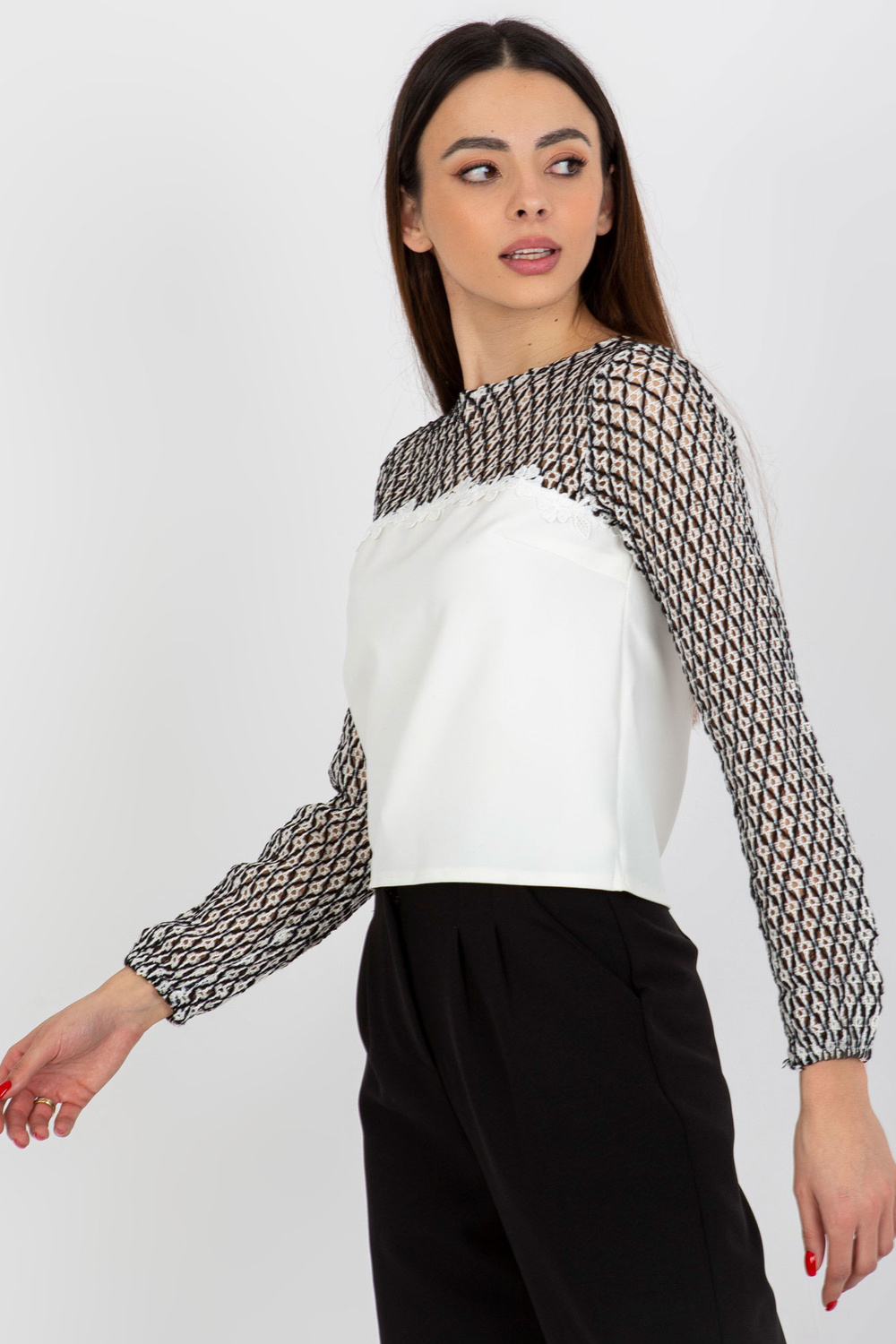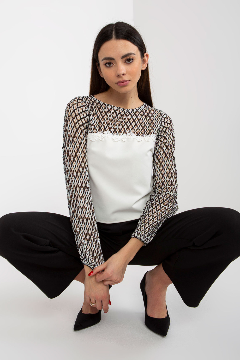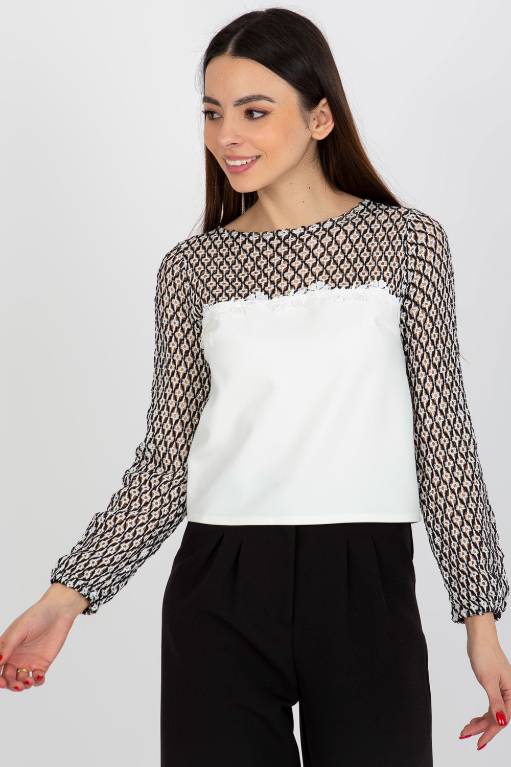 Ecru-Black sieviešu svinīga blūze ar mežģīnēm