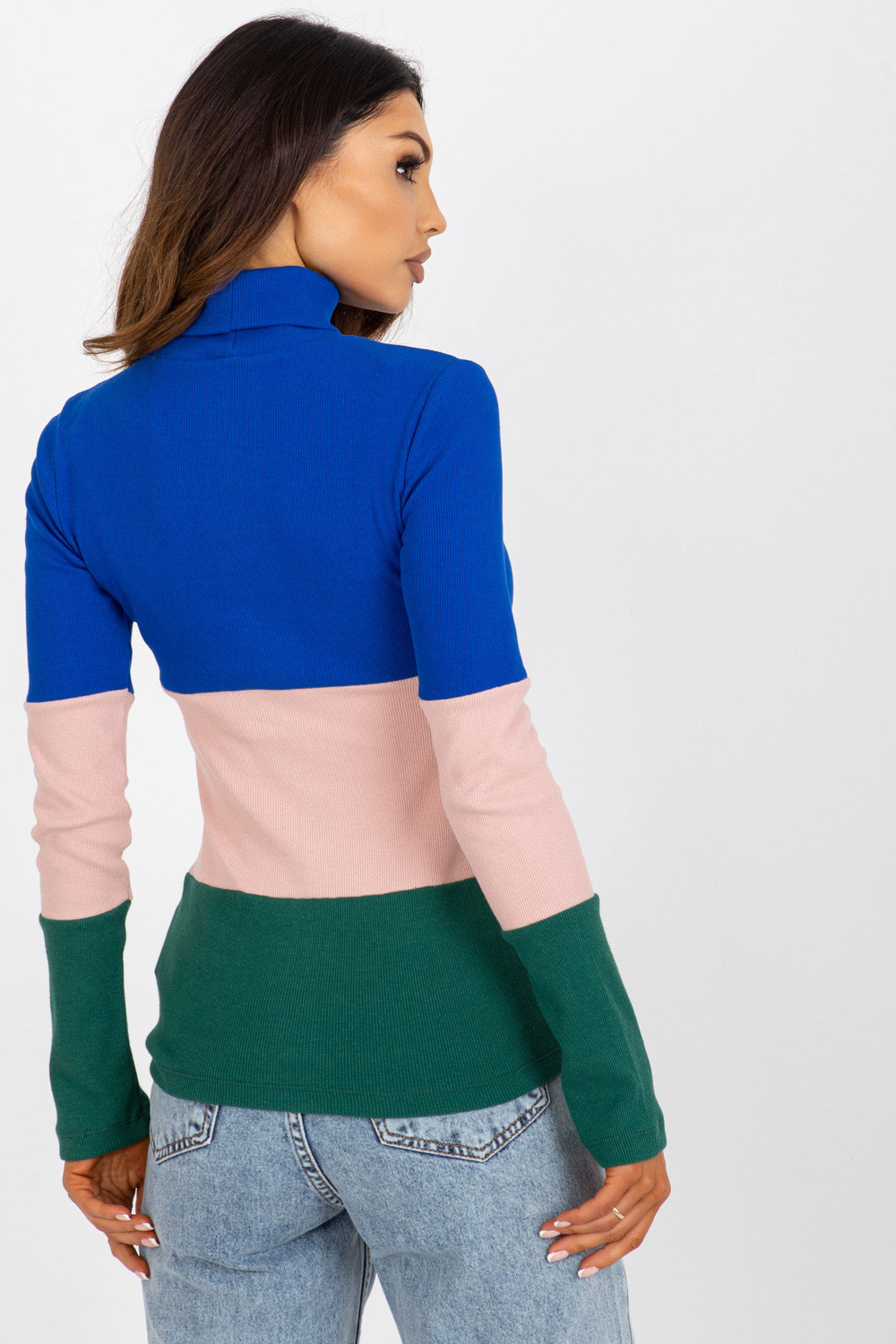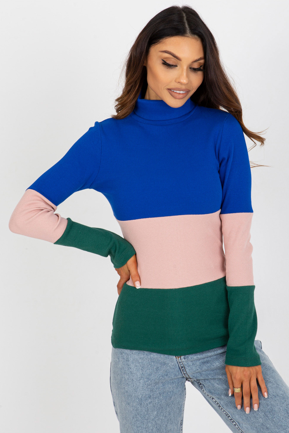Kobalta tumši zaļa rievota pamata blūze ar bruņurupuču apkakli.