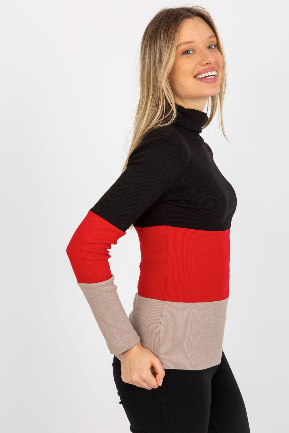 Melna un tumši bēša rievota blūze ar bruņurupuču apkakli.
