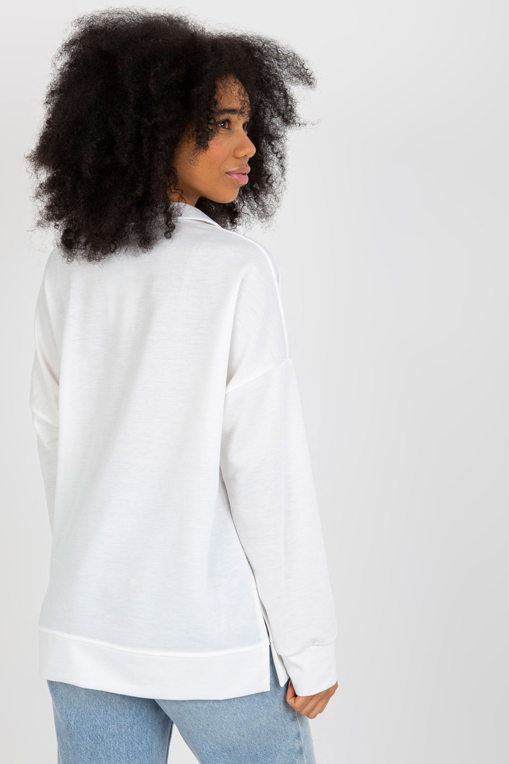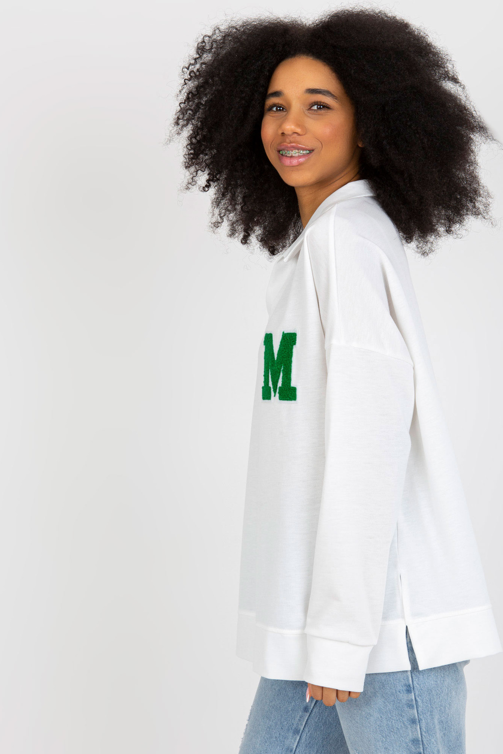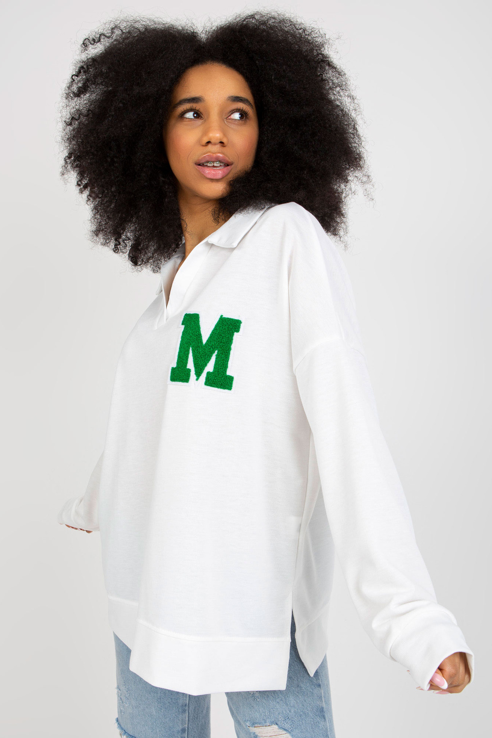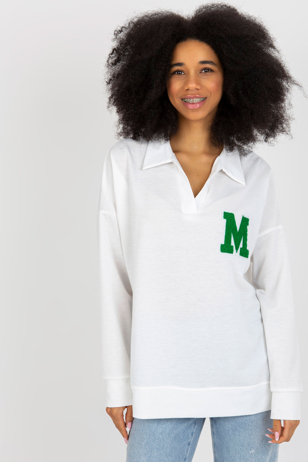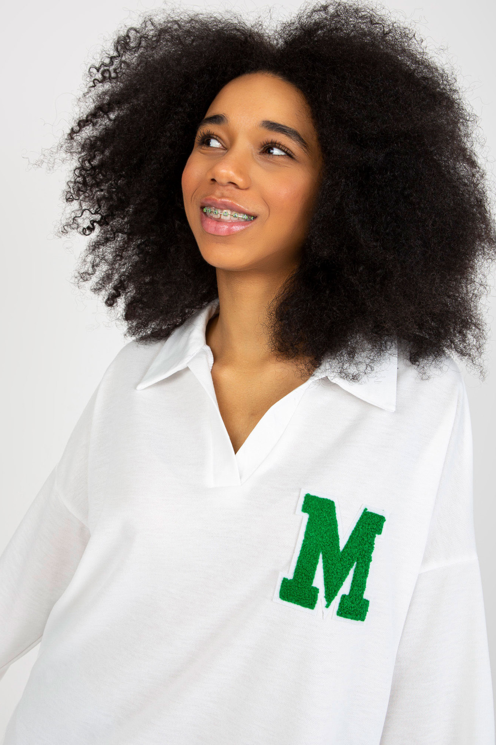 Ecru kokvilnas oversize blūze ar apkakli un burtu