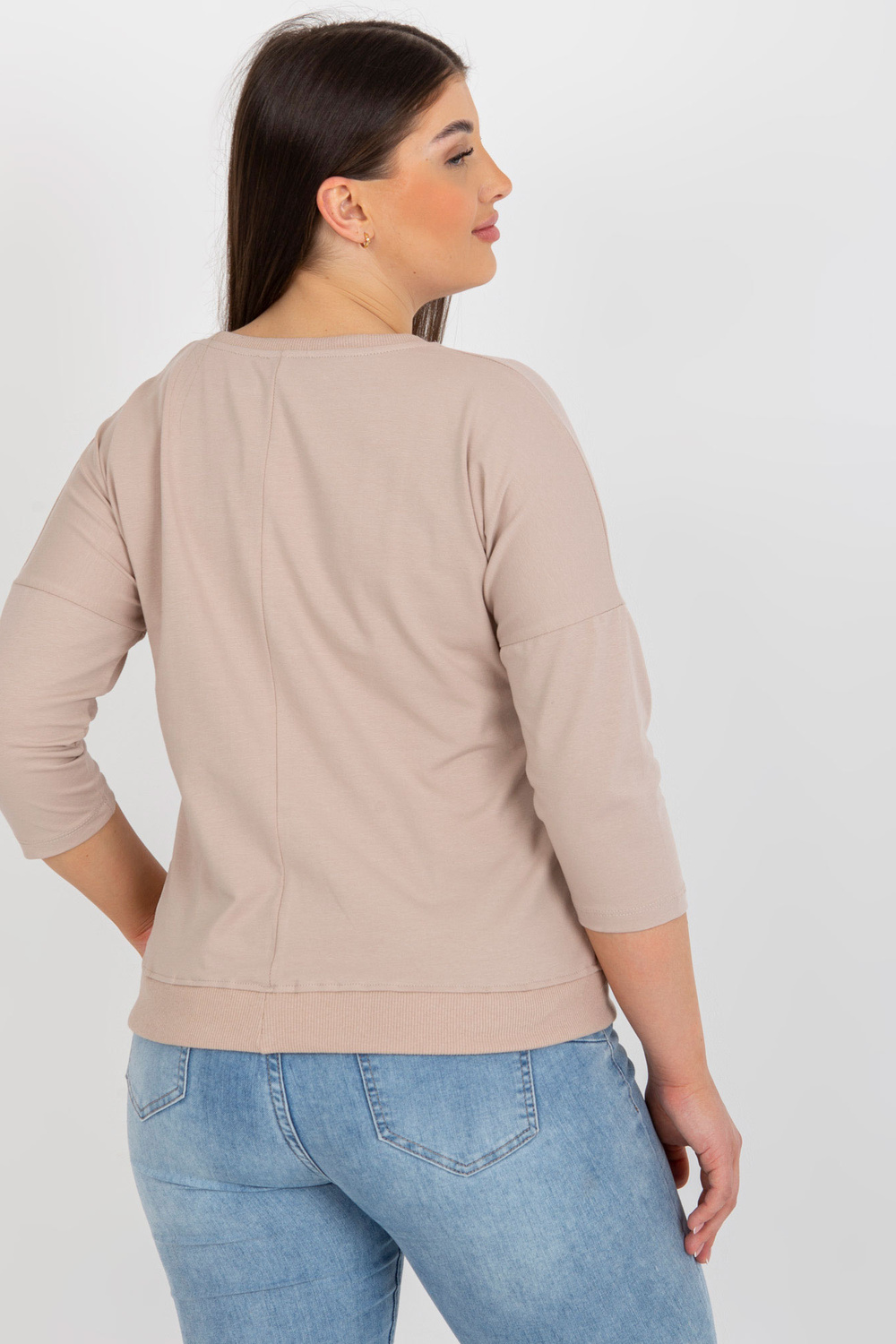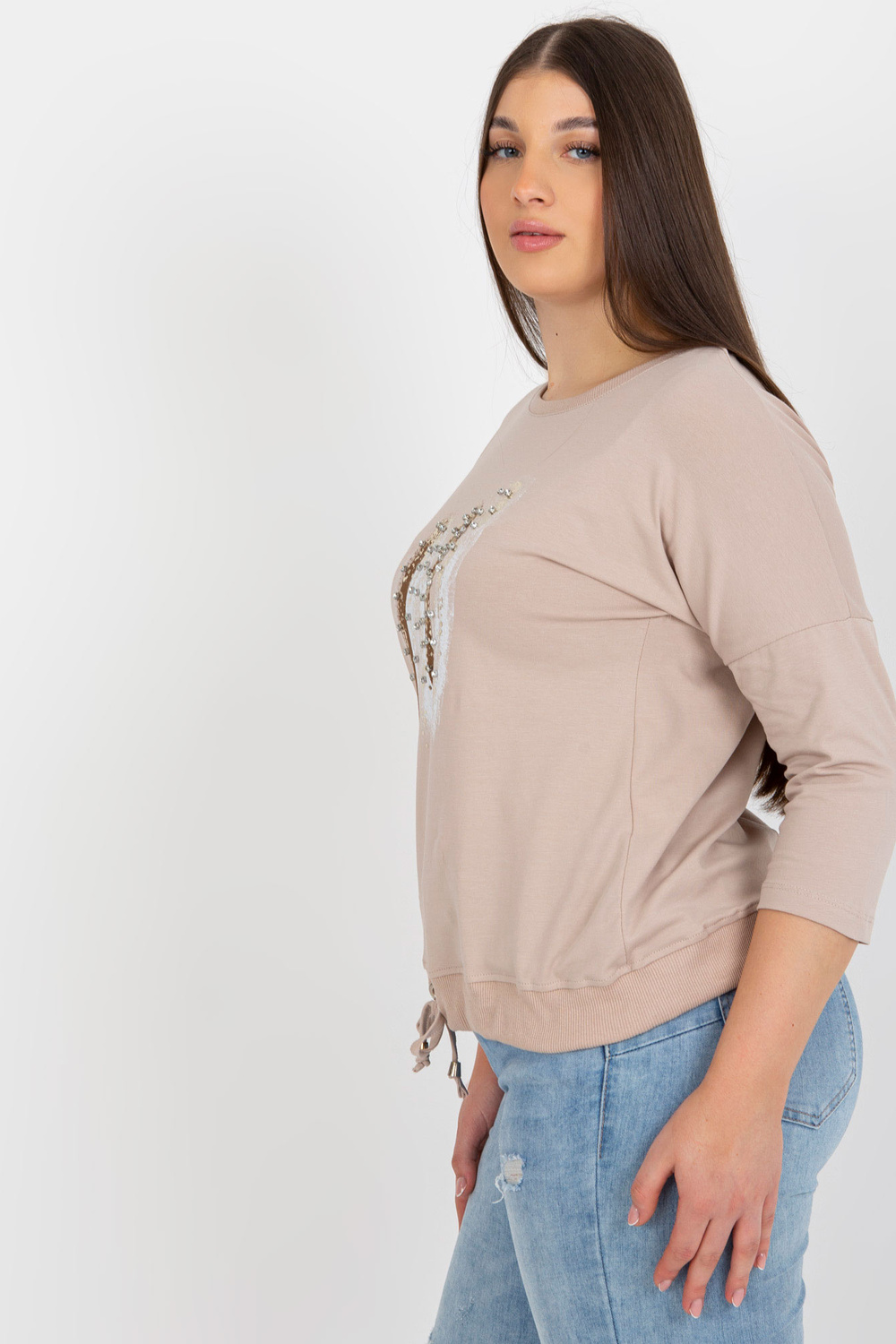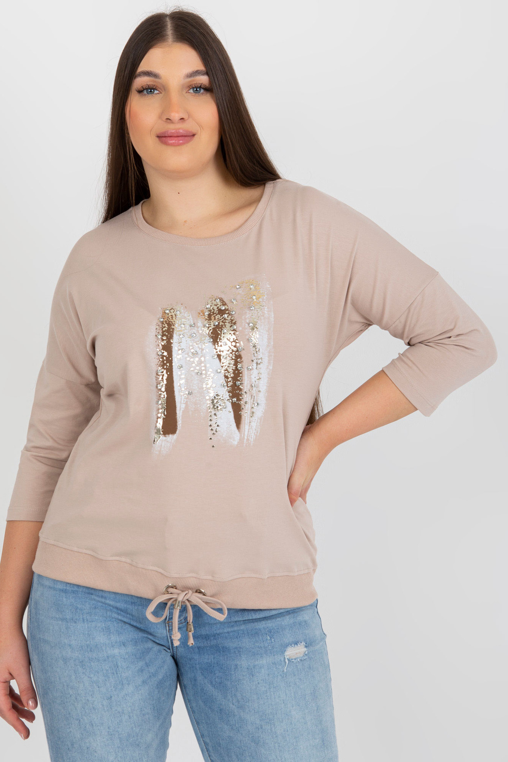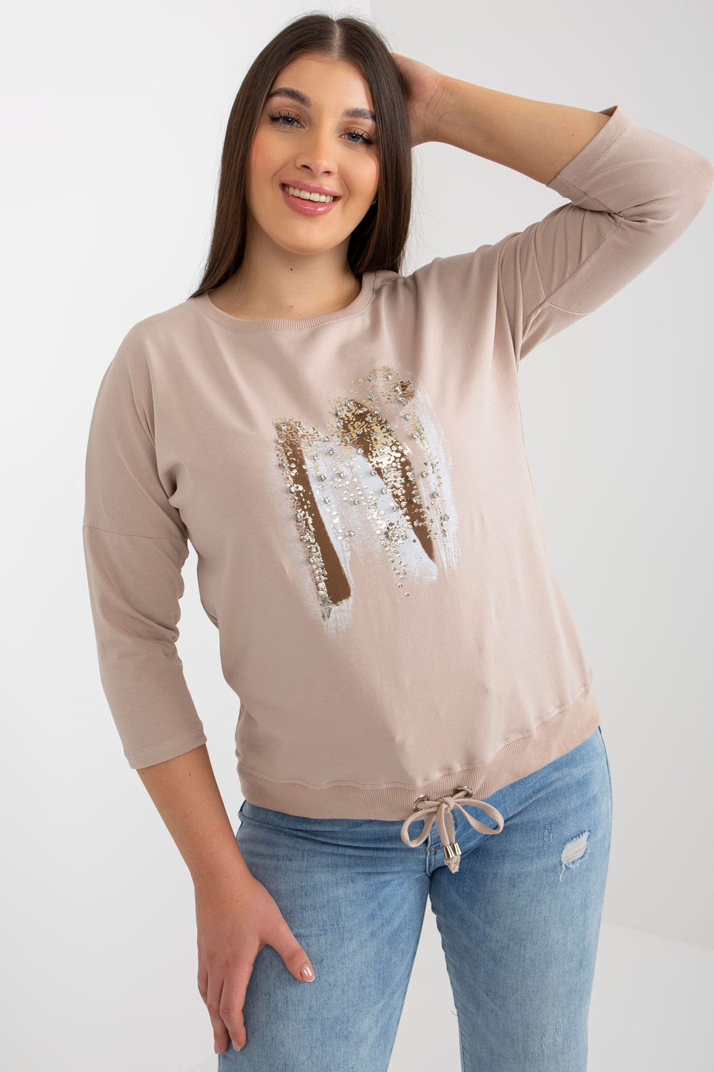 Bēša un brūna liela izmēra sieviešu blūze ar cirkoniju.