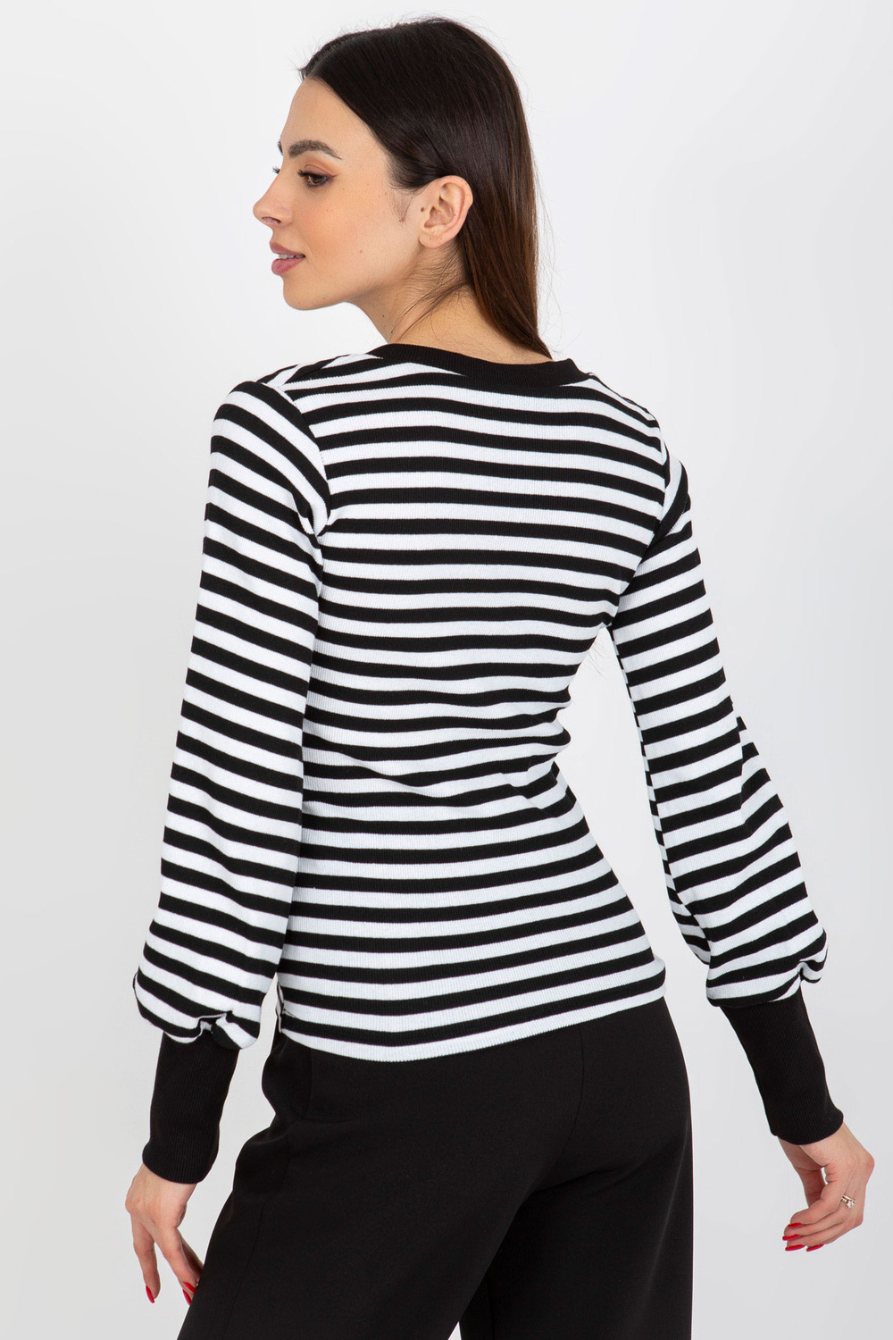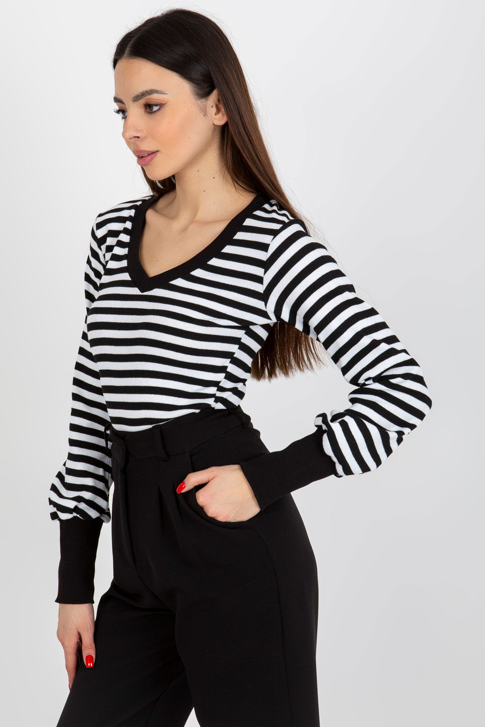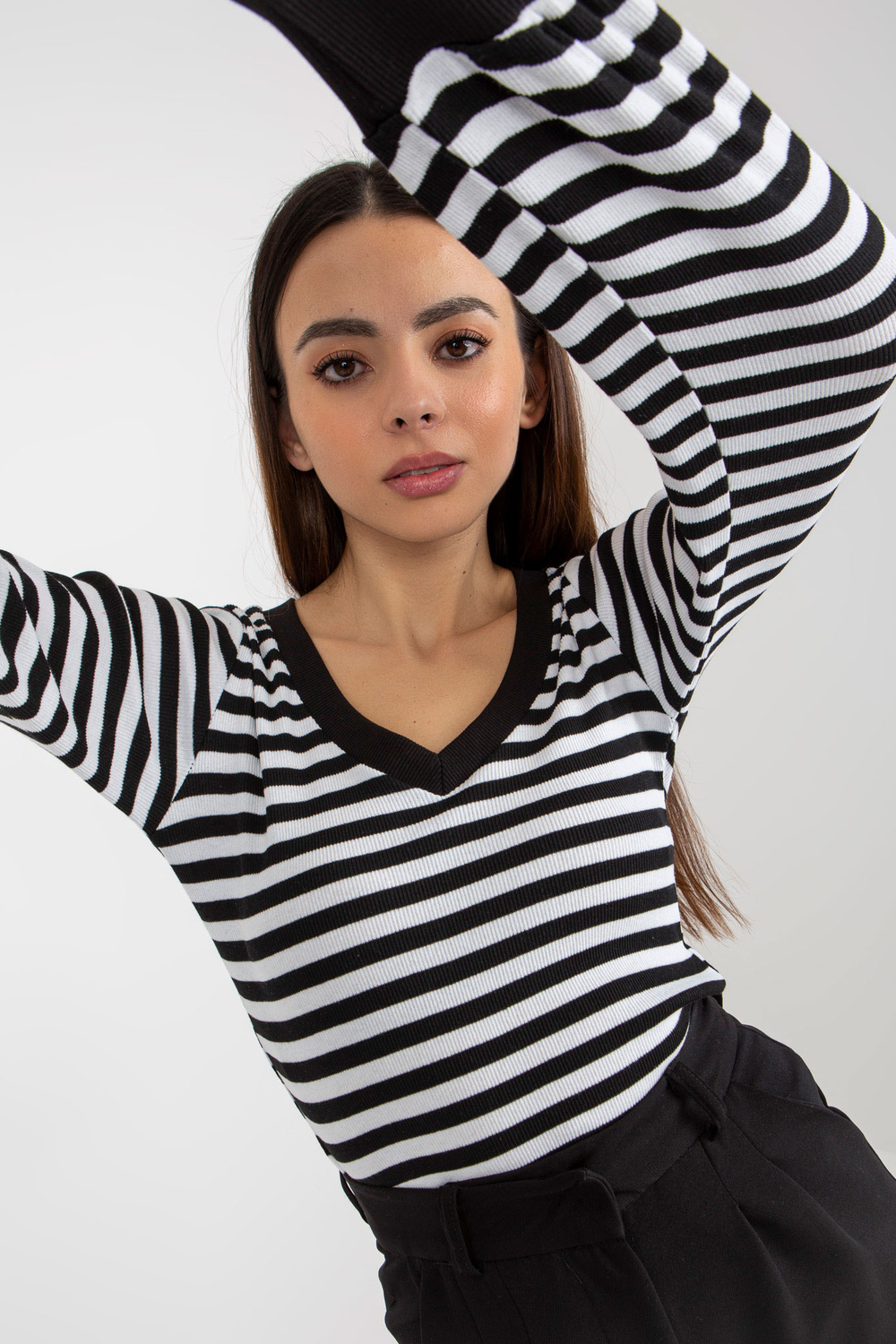 Melnbalta pieguloša blūze ar svītrām BASIC FEEL GOOD.