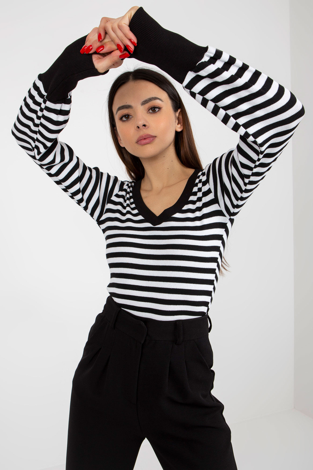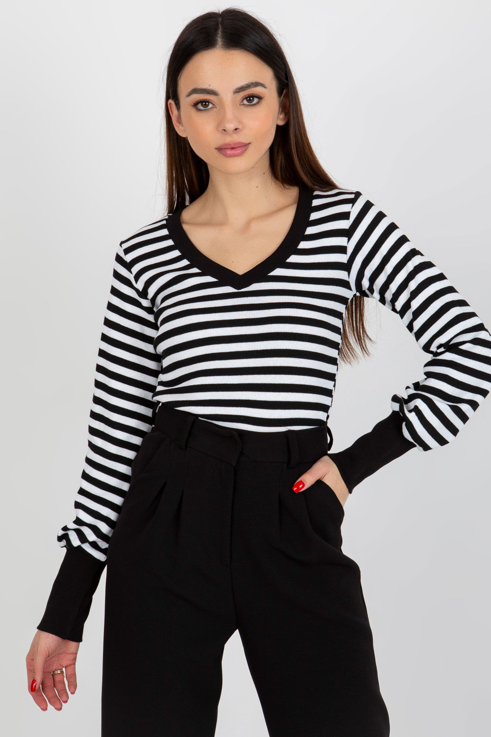 Melnbalta pieguļoša blūze ar svītrām BASIC FEEL GOOD