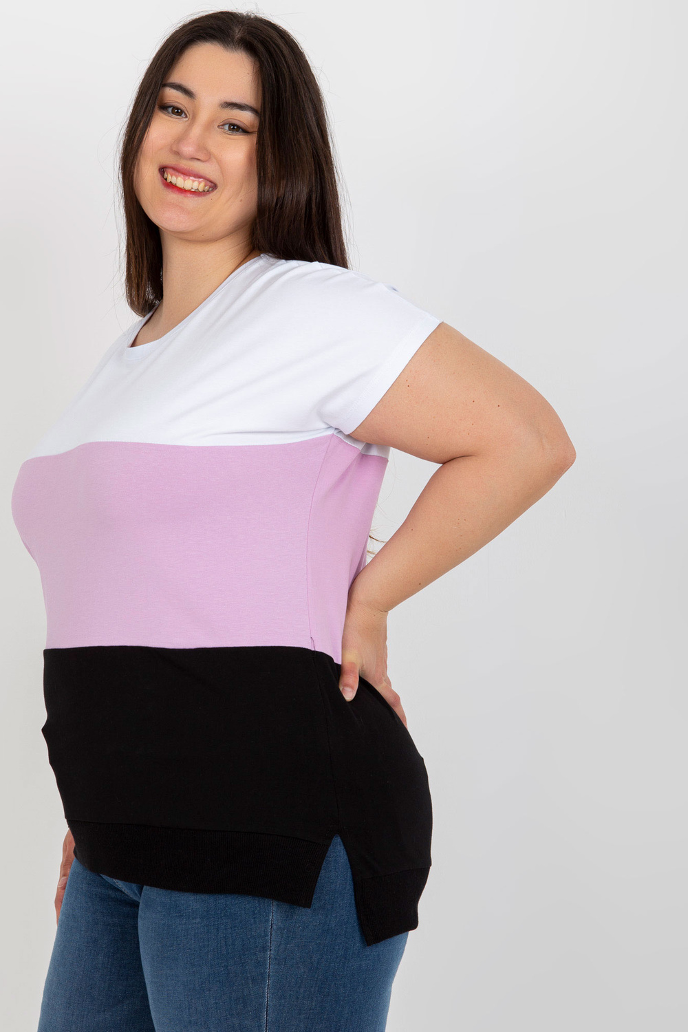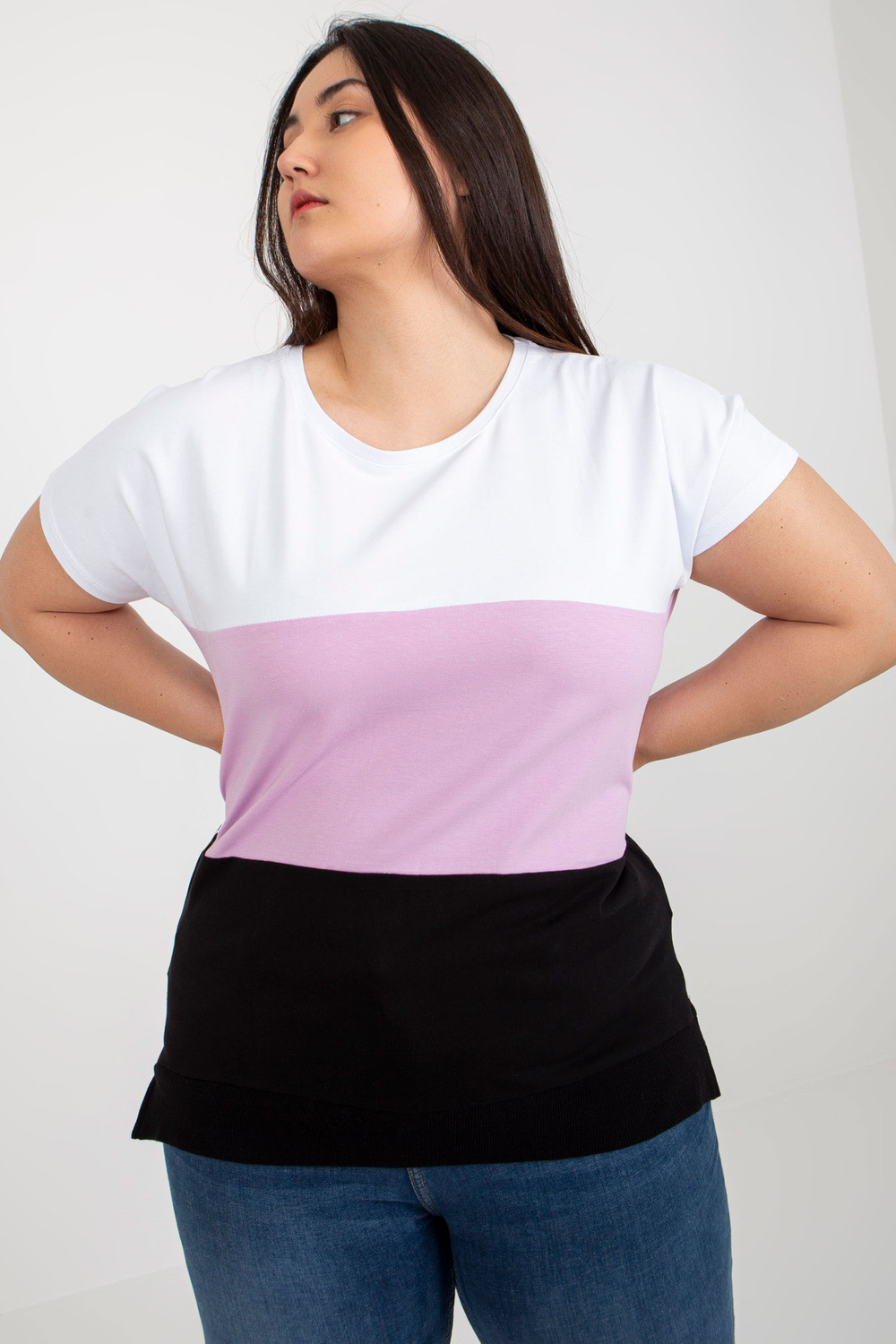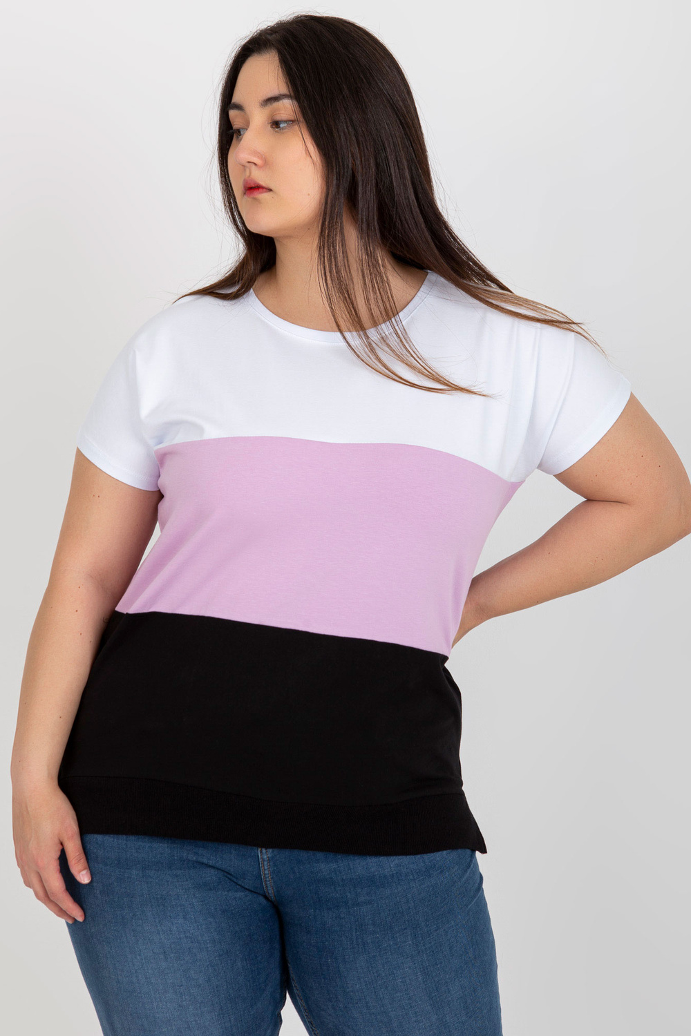 Modele valkā vienu izmēru. Modeļa izmēri: augums 167 cm, krūtis 102 cm, viduklis 81 cm, gurni 113 cm.