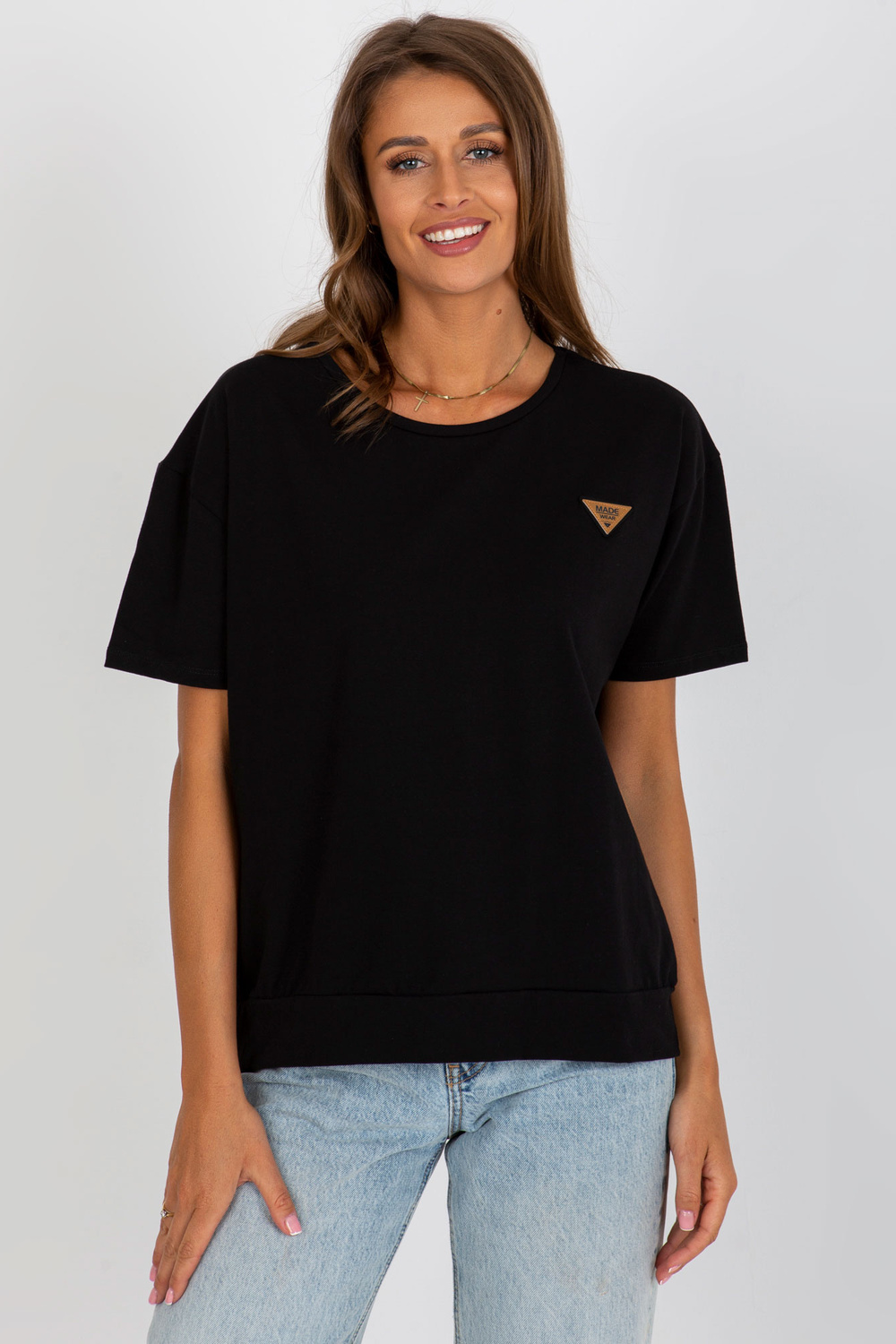 Melna sieviešu liela izmēra blūze ar īsām piedurknēm.